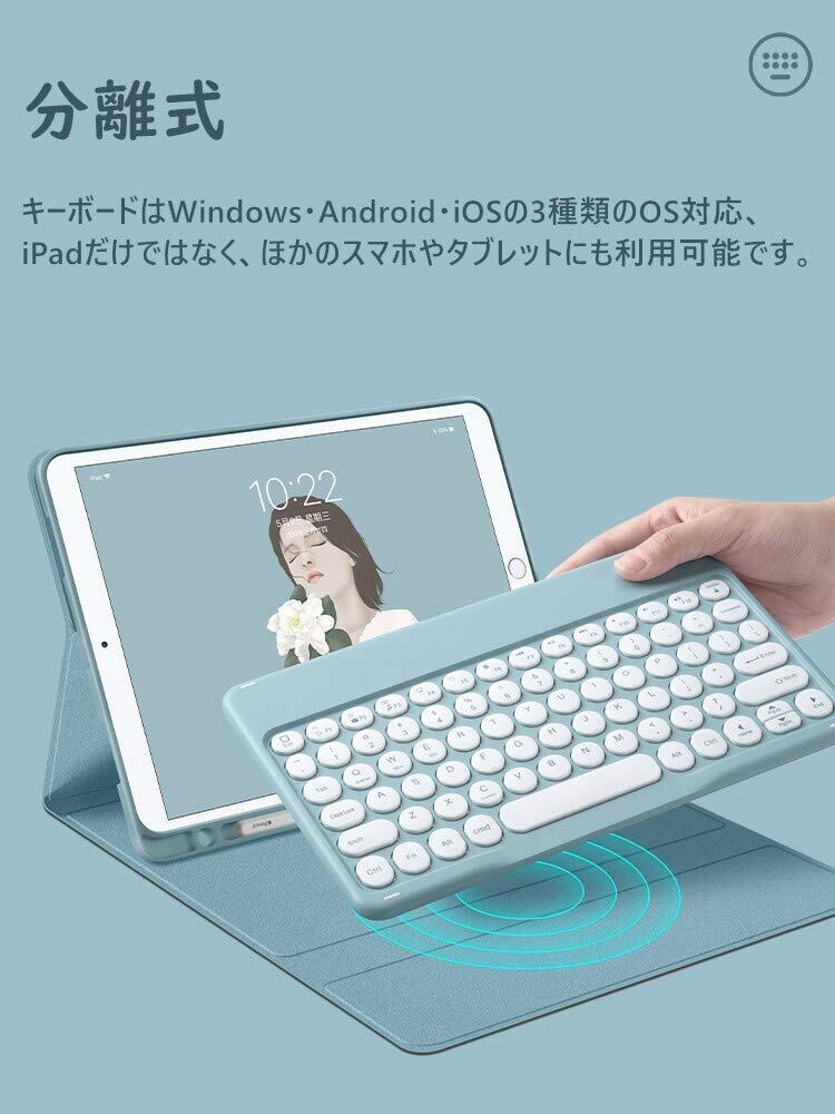 マウス付き iPad Air 11インチ (M3/M2、2025/2024)/ iPad Air 第5/4世代 10.9インチ キーボードケース カラフル 丸型キー レディース 可愛い アイパッド Air5 Air4 キーボードカバー bluetooth カラーキーボード ,霧ブルー