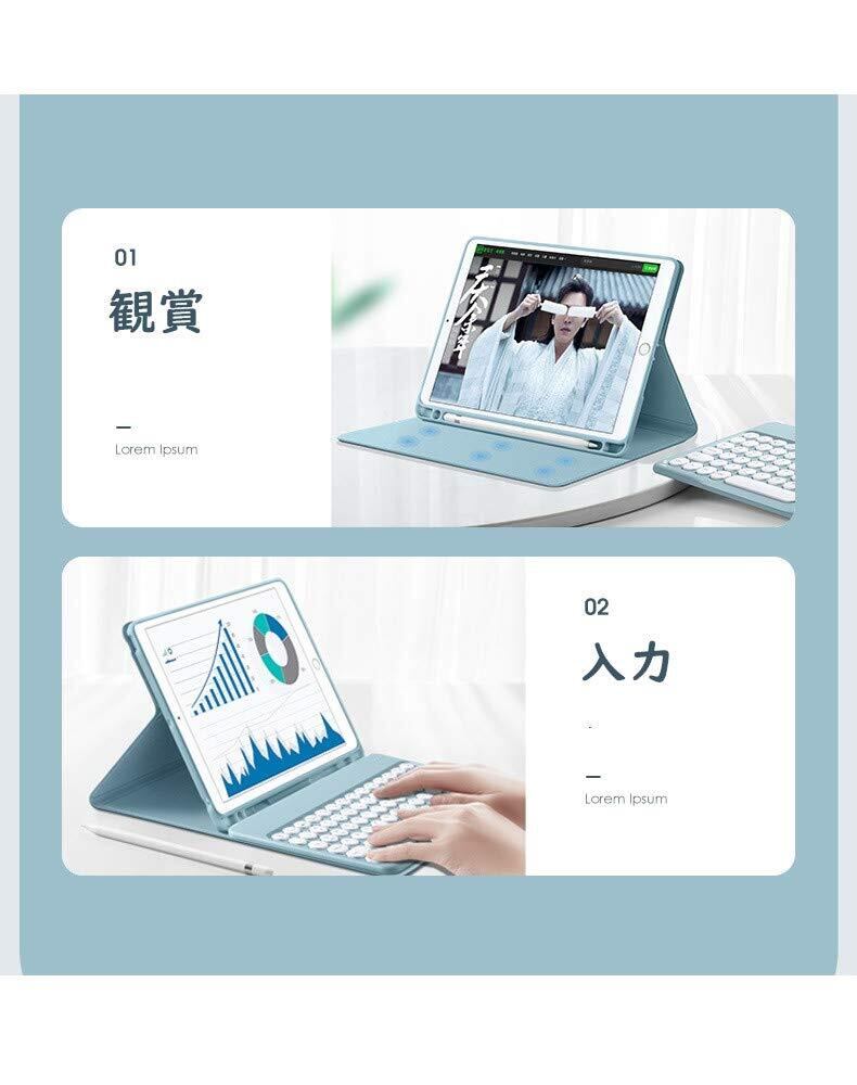 ワイヤレスマウス付き:キーボードケースとマウス付きのセットで使い勝手がよい、iPadはまるでノートパソコンのように利用できます。マウスはBluetoothで接続簡単、充電式で便利。