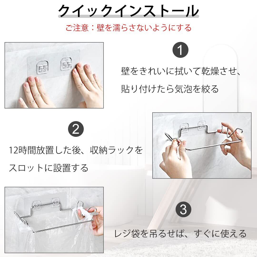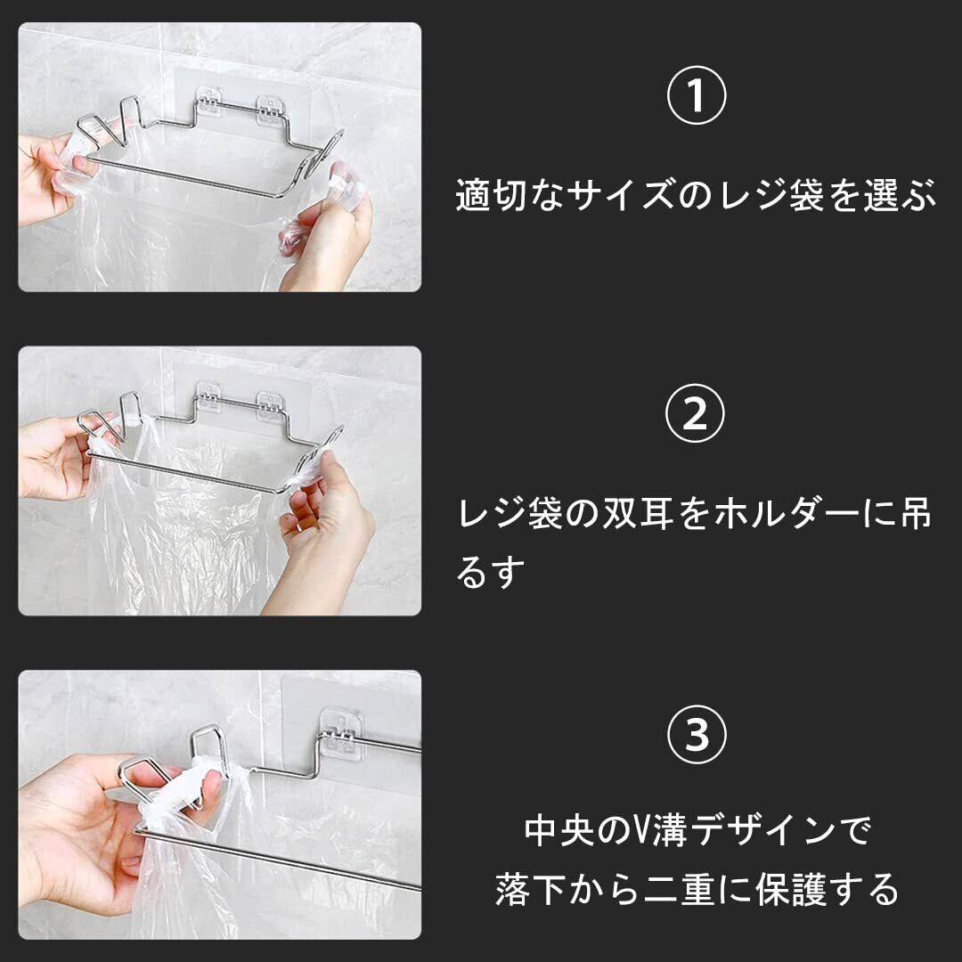 Zayookey レジ袋ハンガー ゴミ袋ホルダー ステンレス鋼 強力粘着 貼り付け 壁掛け 生ごみ入れ スペース節約 ホーム キッチン トイレ 浴室 キャビネット ドア ストレージ 多機能 便利 レジ袋ストッカー付き (レジ袋ホルダー2個+レジ袋ストッカー1個)