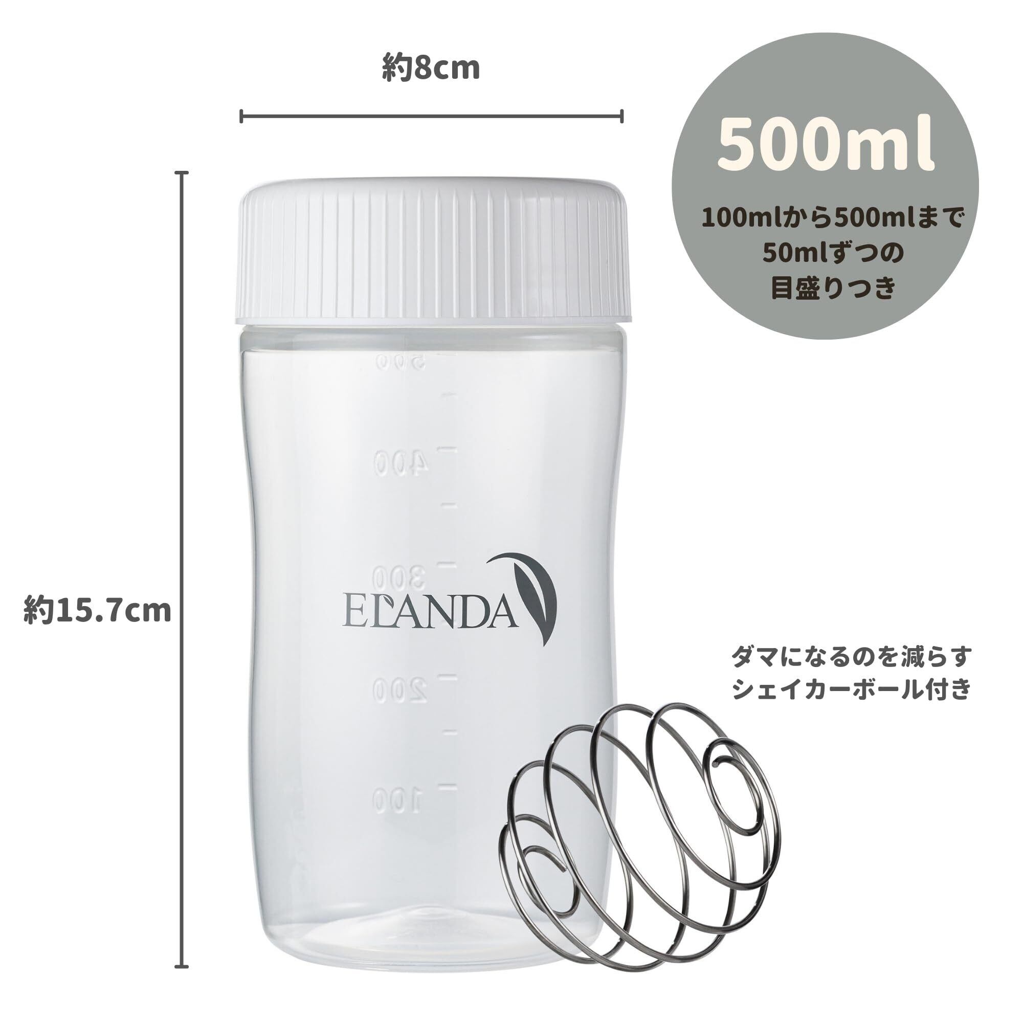 ELANDA エランダ シェイカー ボトル プロテイン シェーカー 500ml 【ボール付き】 白 ホワイト シンプル BPAフリー