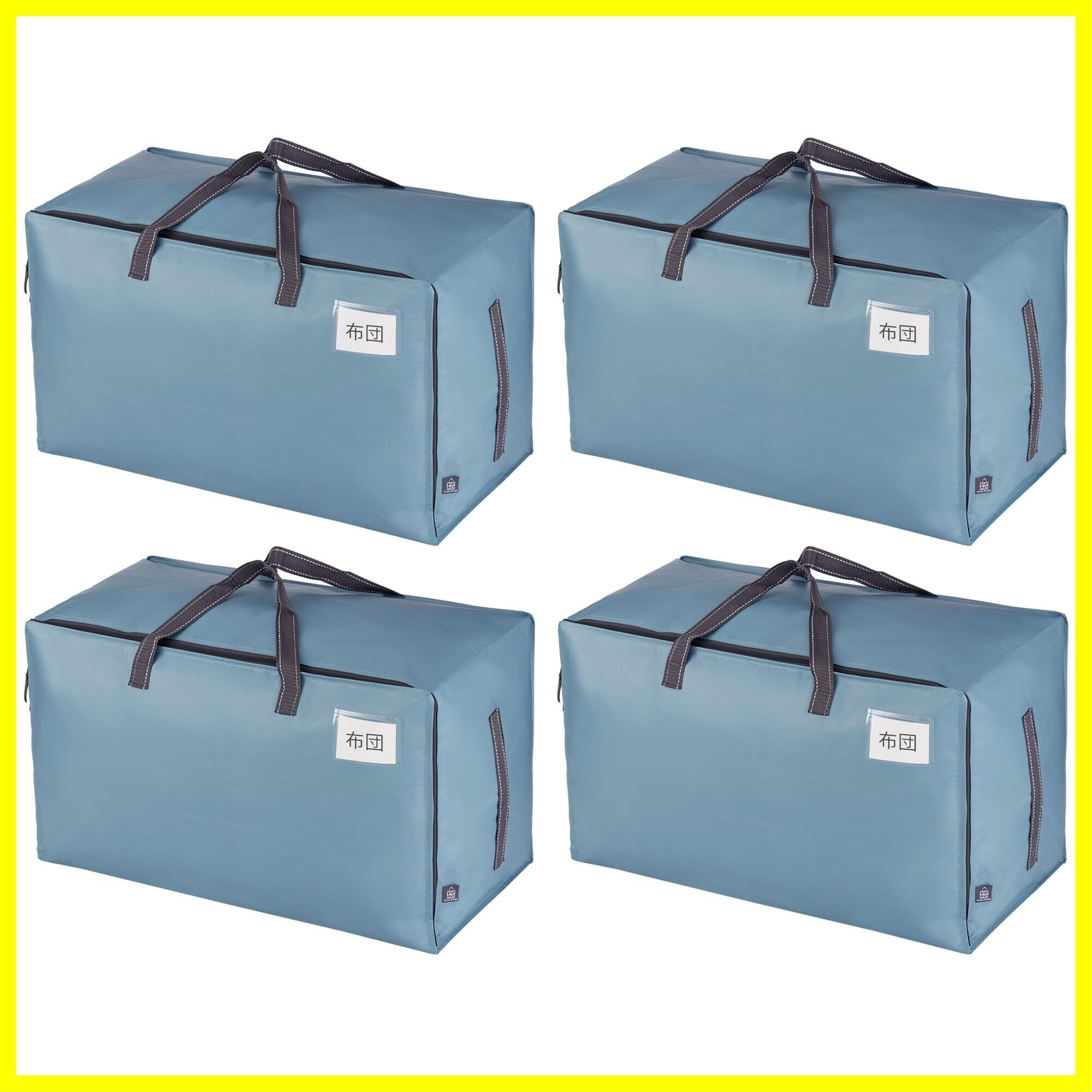 VENO 布団収納袋 103L大容量 引越し用ダンボール 代替品 布団袋 3面ファスナー 2ペア持ち手付き 耐水 高耐久 折りたたみ ラベルポケット付き 収納ケース 引越し 布団収納 衣類収納 押入れ収納 (ライトブルー 4枚セット)