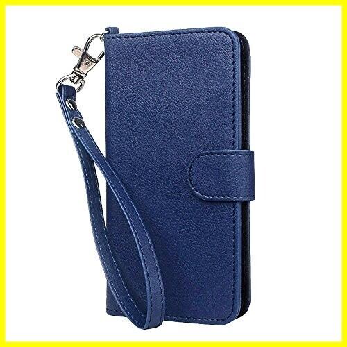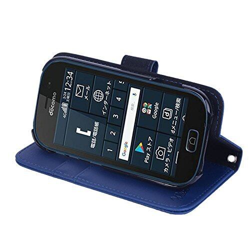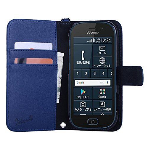 wisers らくらくスマートフォン me F-03K 対応 手帳型スマホケース (ダークブルー) ストラップ 2種付き (ハンドストラップ/ネックストラップ) 2018 新型