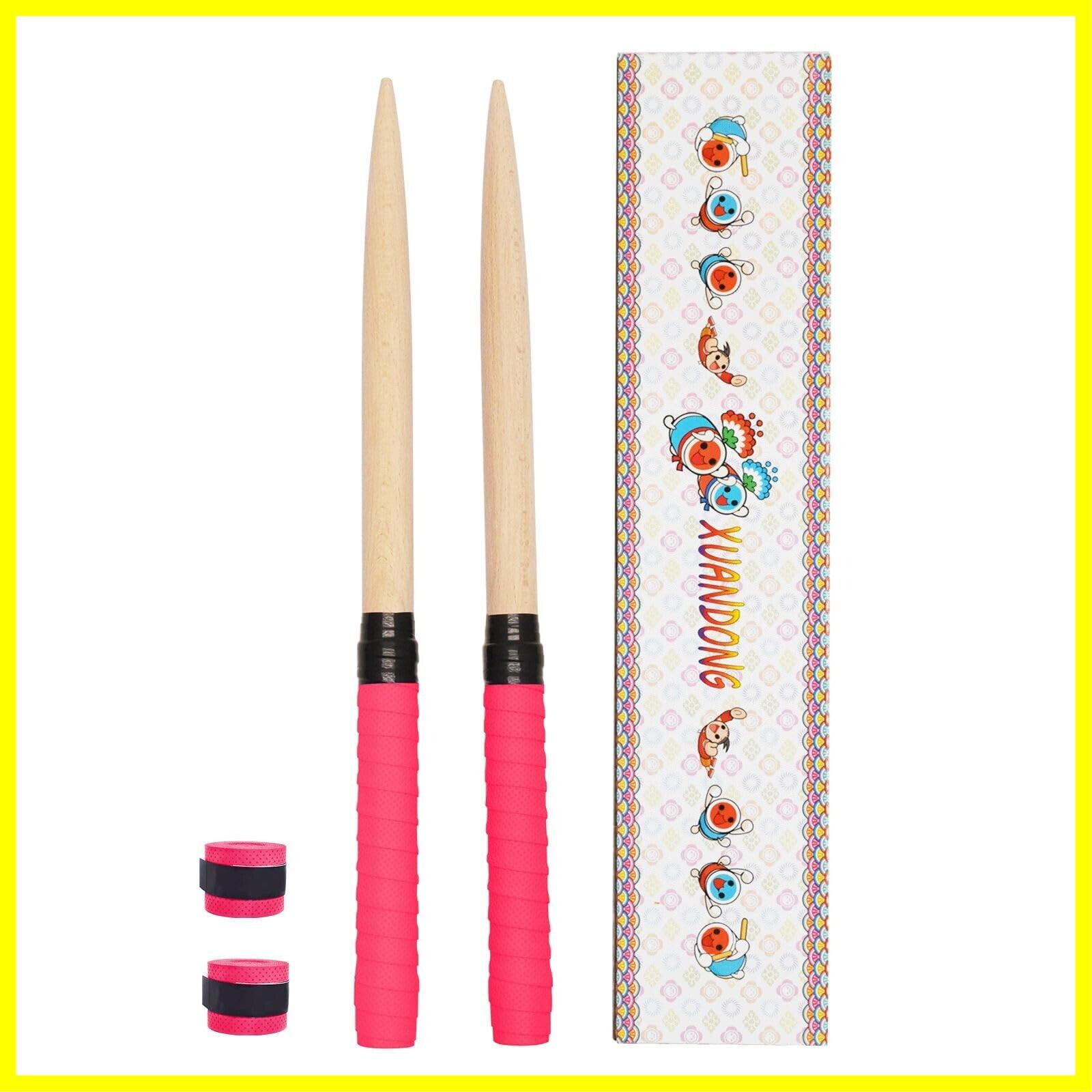 XUANDONG 適用太鼓の達人 マイバチ 太鼓バチ 交換用グリップ 木製 硬材 テーパー加工 2本セット 380ミリ-25ミリ ロール用 アーケードで大活躍 予備グリップテープ2個付き 5色選べる (赤)