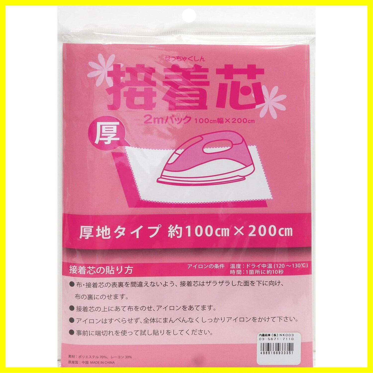 洋服やバッグ、ポーチなどを作る際に、型崩れ防止、生地に張りを持たせる、補強等幅広い用途にお使いいただけます。