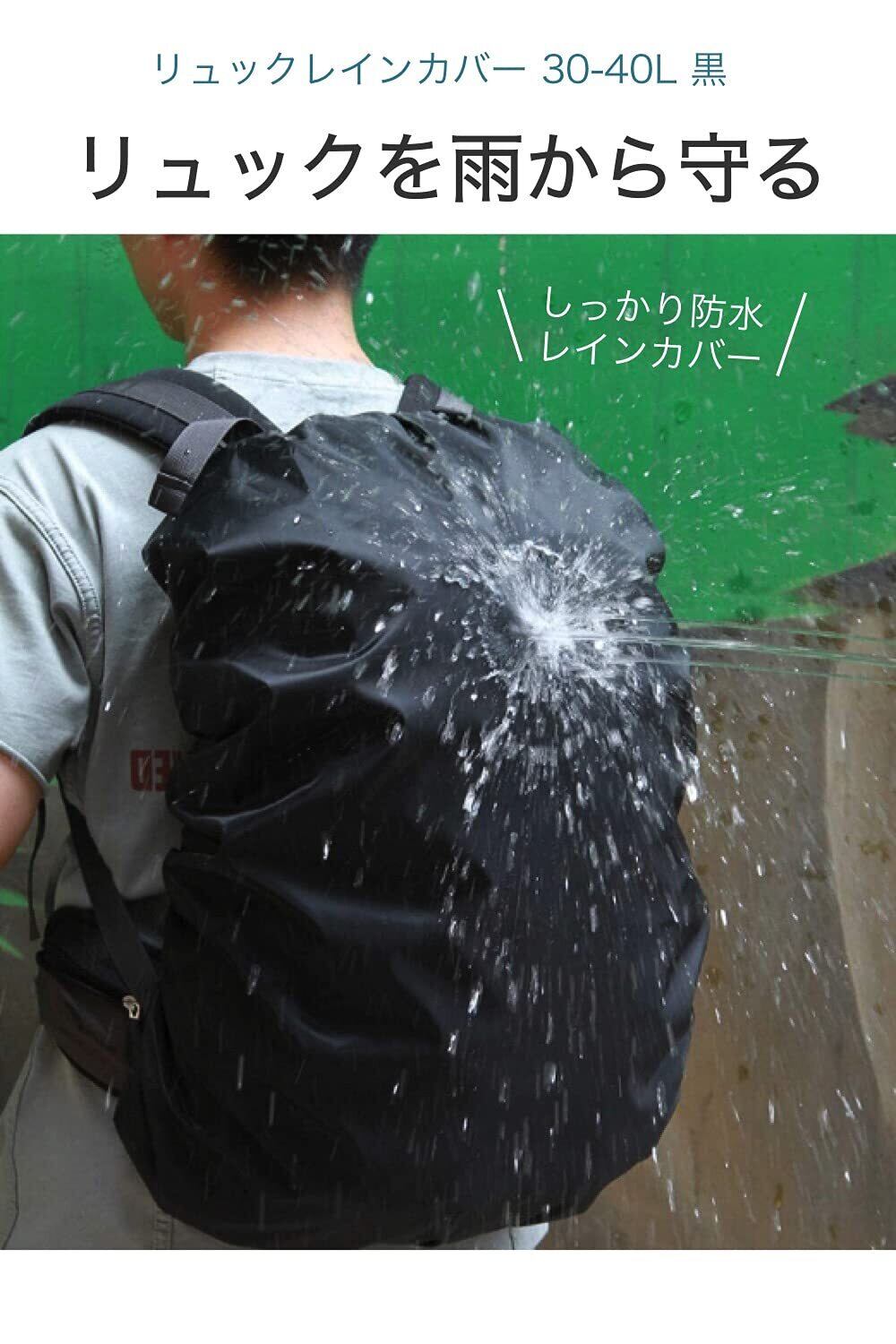 [wumio] リュックカバー 30-40L用 黒 1枚 レインカバー リュックサック 防水 通勤 通学 アウトドア キャンプ 登山 薄型 軽量 シンプル 雨よけ