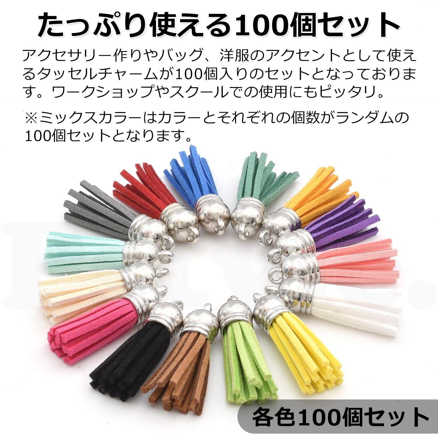 【たっぷり使える100個セット】 アクセサリー作りやバッグ、 洋服のアクセントとして使えるタッセルチャームが100個入りのセットとなっております。ワークショップやスクールの手芸にもピッタリ。 ※ミックスカラーはカラーとそれぞれの個数がランダムの100個セットとなります。