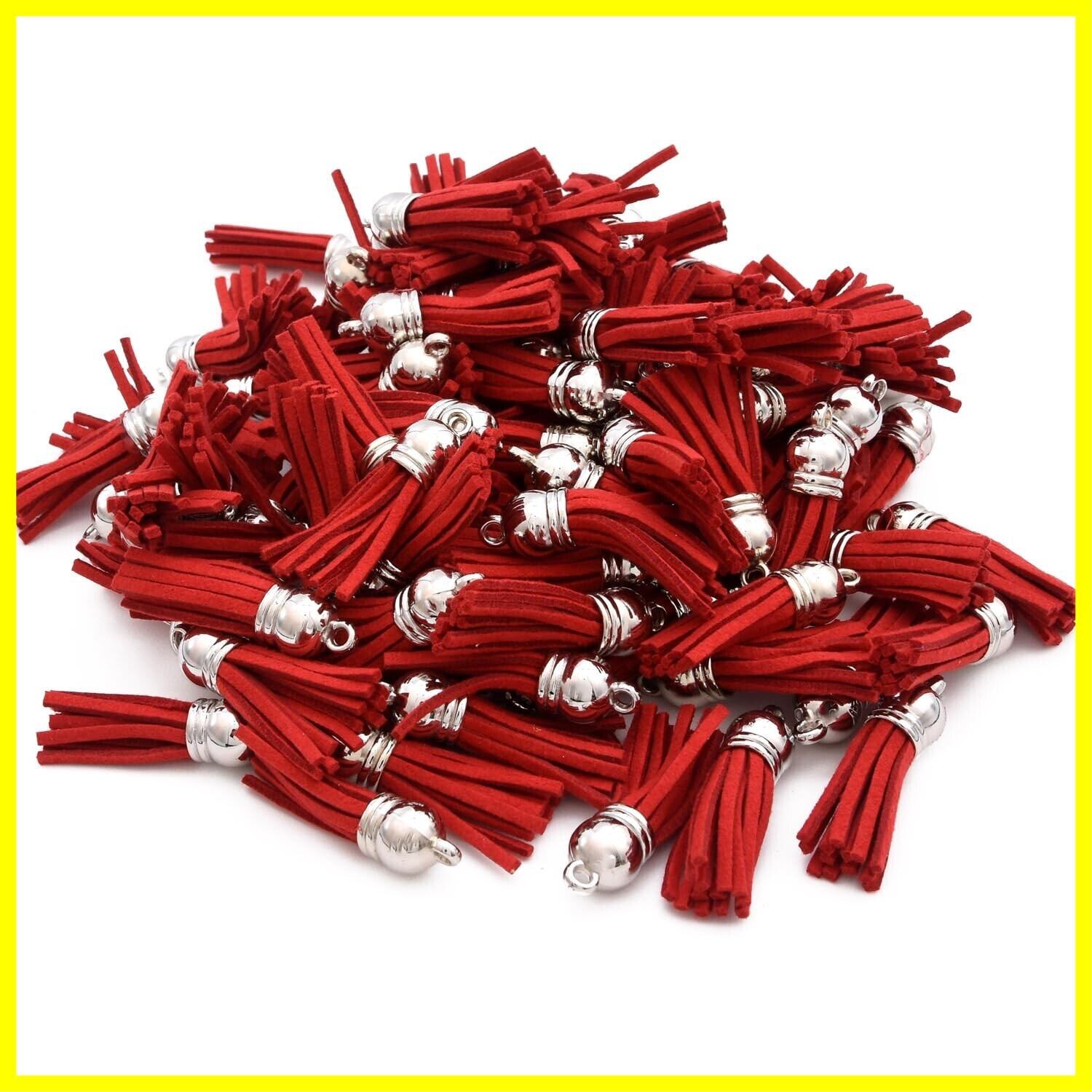 Pstyle. タッセル チャーム ミニ 革 手芸 パーツ おしゃれ 100個セット PST-147 (レッド)