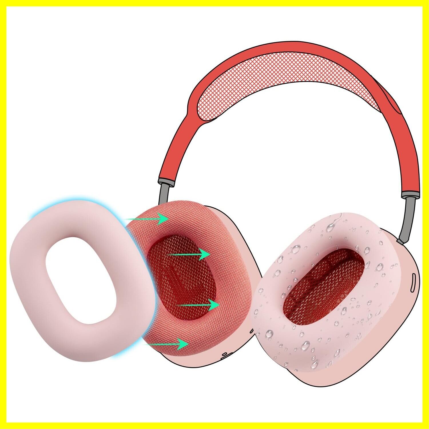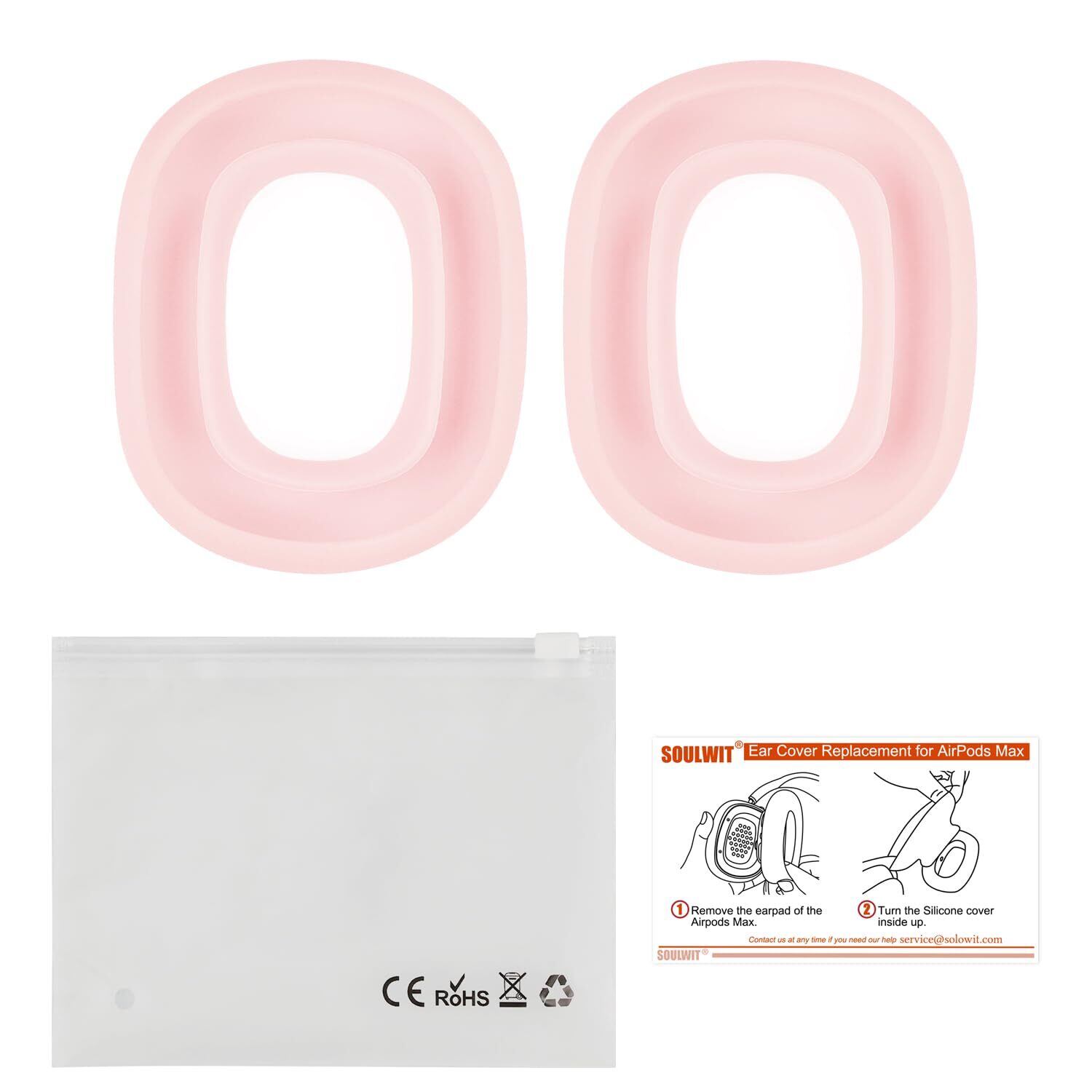 SOULWIT イヤーパッドカバー ヘッドパッドケース AirPods Max ヘッドホン 用 保護ケース 柔らかいシリコン 劣化防止 防塵 防汗 頑丈 洗える (ピンク-1ペア)