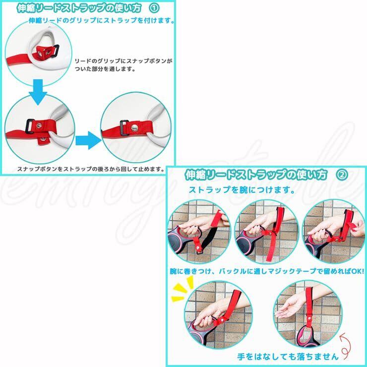 スナップボタンで調節可能だから、ほとんどの伸縮リードに取り付け可能です。 マジックテープで輪の大きさを変えられます。