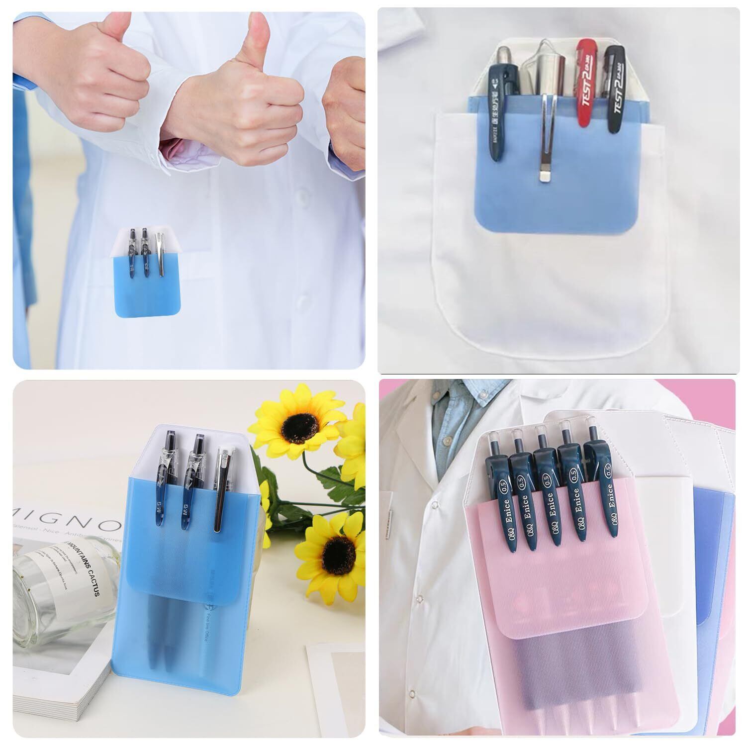 白衣、スーツ、シャツ、ユニフォームなどポケットのある服に使用できます。このポケットプロテクターにペンを差し込むことで、衣類の汚れを防ぐことができます。医師、看護師、教師、エンジニア、研究者など、日常的にペンを必要とする職業に適しています。