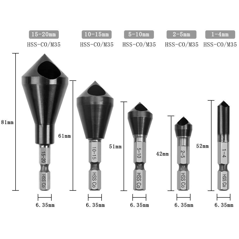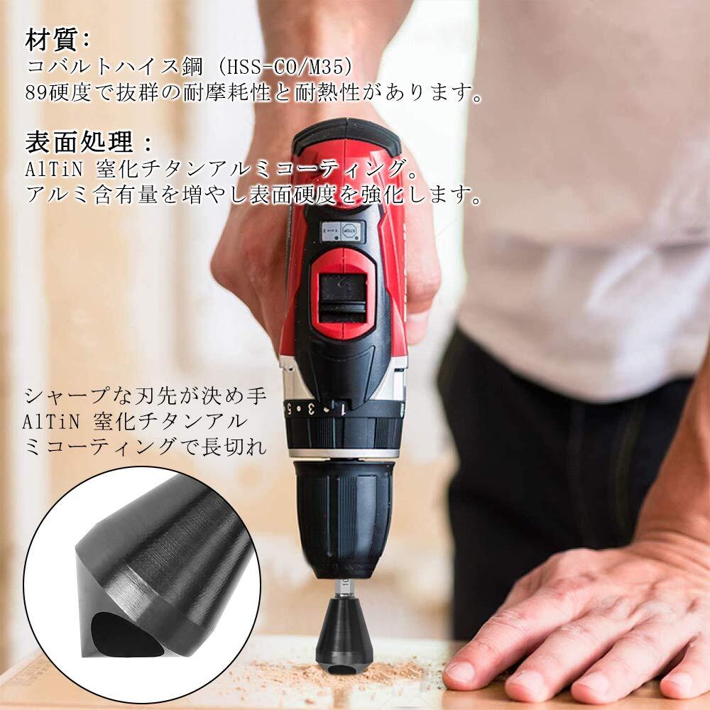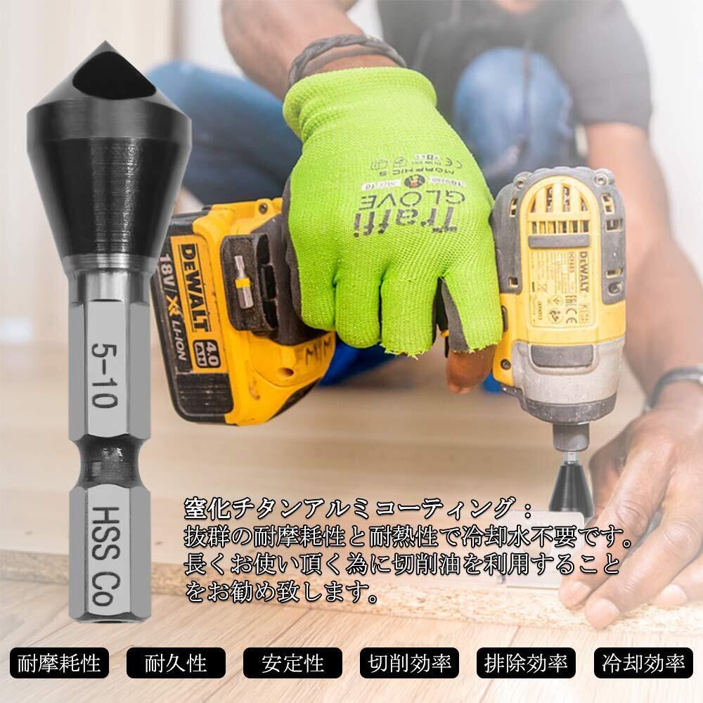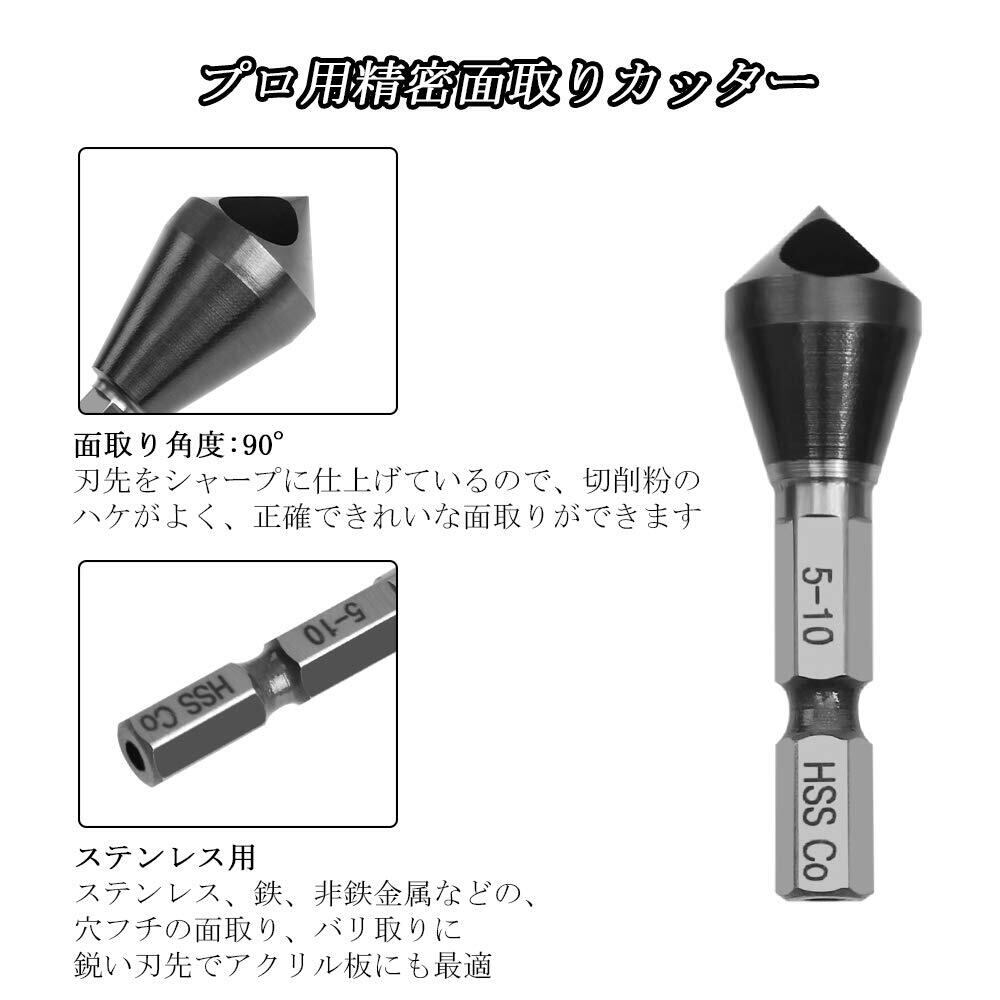 【適用範囲】:木材・アルミ・鉄材のネジ穴の面取りに、パイプ内径の面取り・穴あけ後のバリ取りに、鉄・ステンレス・非鉄金属用向けます。アクリル板にも使えます。また軸の形状が六角軸なので、インパクトドライバー・電気ドリル・充電ドリルでも使用できます。