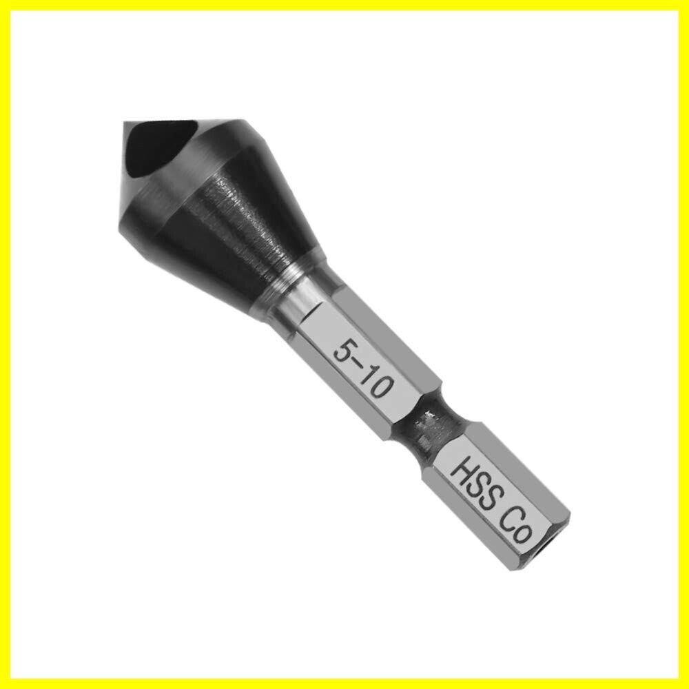 面取りカッター ステンレス用 六角軸 XMSSAA ドリル面取り 5-10mm バリ取り コバルトハイス鋼 HSS-Co M35 窒化チタンアルミコーティング 鉄工用 穴開き型 (5-10mm)