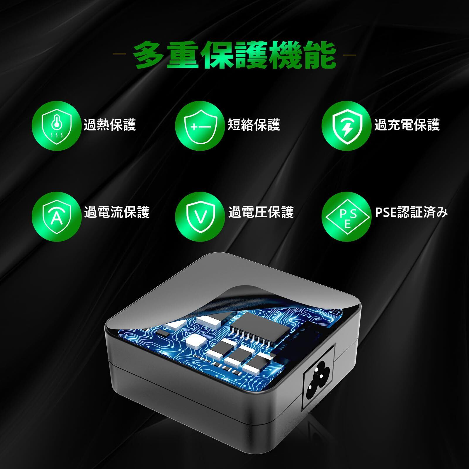 特徴 短絡保護, 自動停止, 軽量デザイン, 高速充電