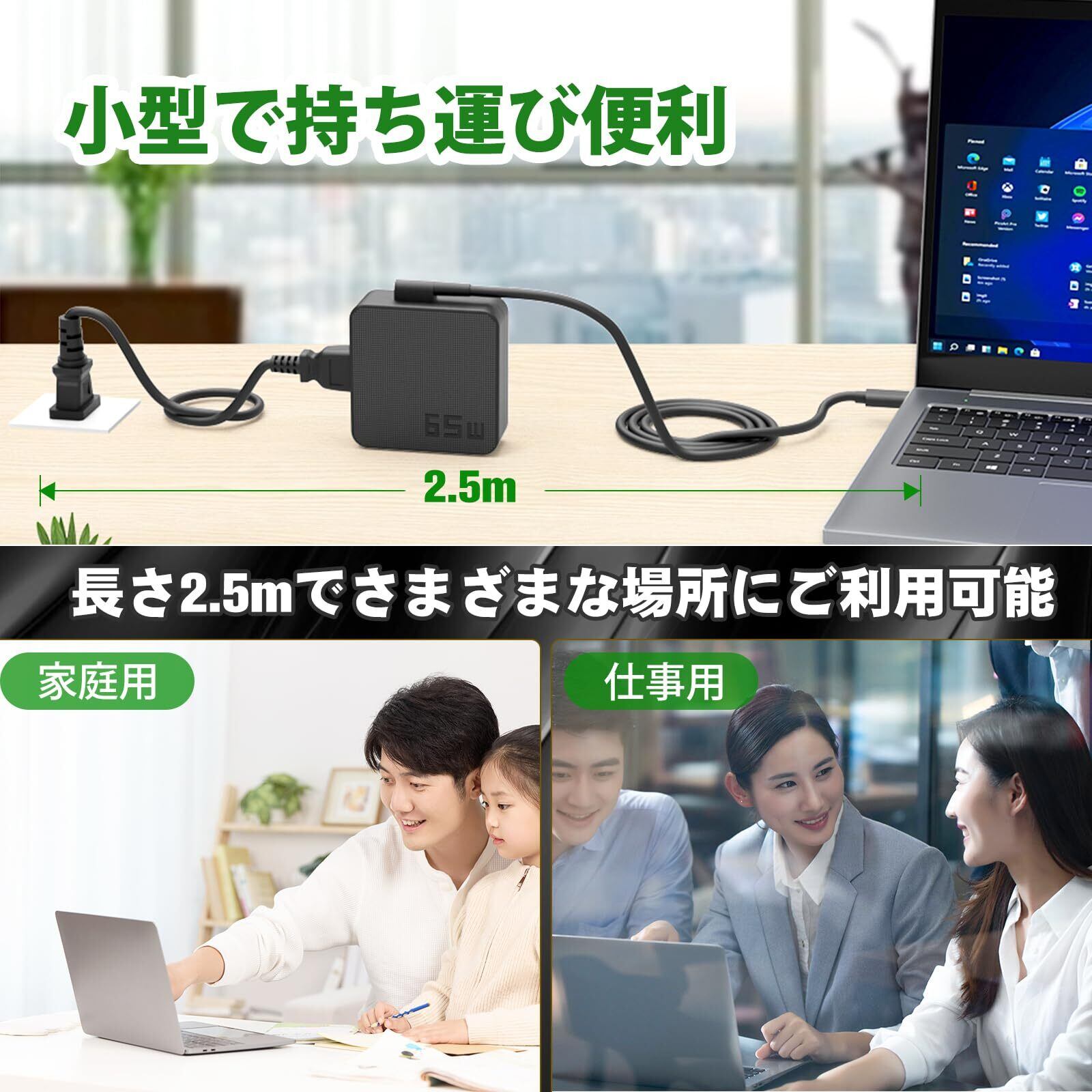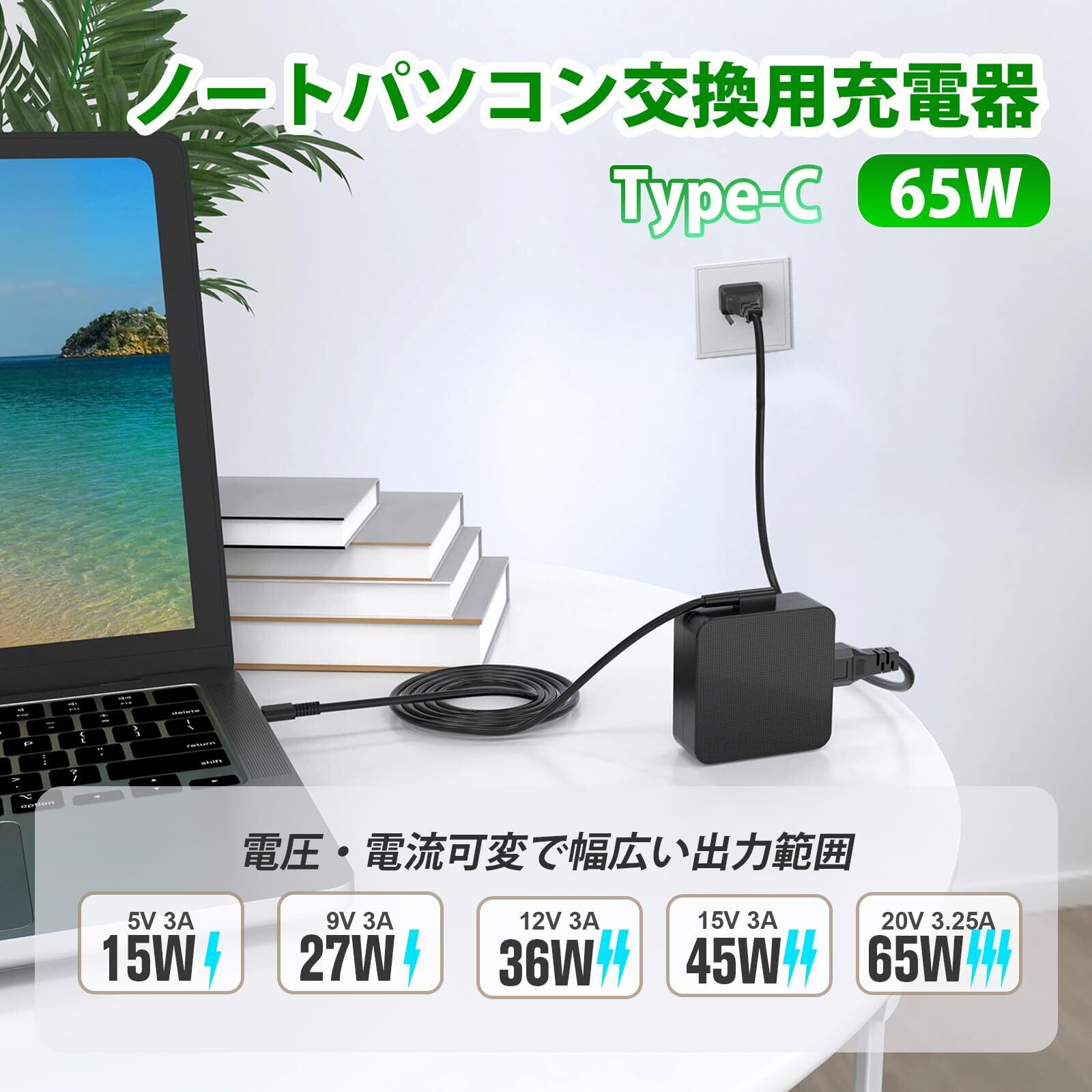 【65W USB Type-C ACアダプターの商品規格】QYDノートパソコン用ACアダプターは交換用充電器となっております。入力:AC 100V-240V 50/60Hz;USB-C出力:5V-3A 9V-3A 12V-3A 15V-3A 20V-3.25A;最大出力65W。※このUSB-C 充電器はType-C 65W及びその以下の製品に適用です。本製品をご購入する前に、お使いデバイスの入力電圧と電流及びインターフェースタイプなどをご確認ください。