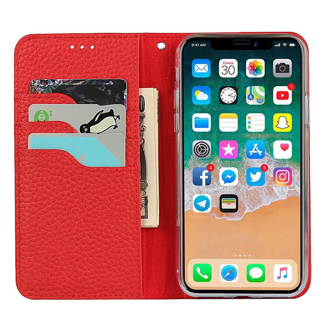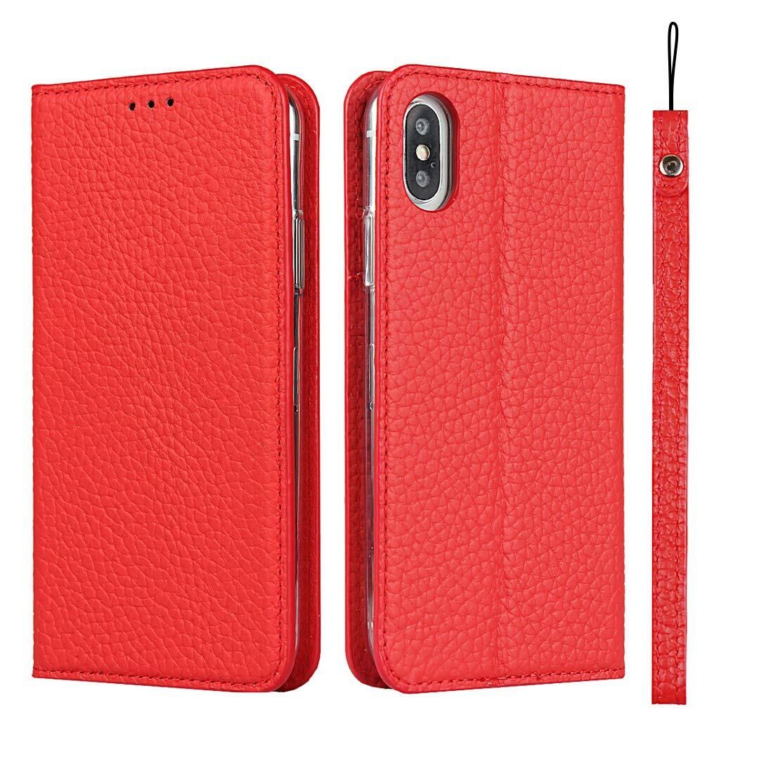 Eastwave for iPhone XS Max ケース for iPhone XSmax ケース手帳型 アイフォンfor iPhonexsmax ケース for iPhonexs max 財布型 カバー 本革 柔らかい 本皮 高質 スプラットホール付き スプラット同梱 内蔵マグネットカード収納 -レッド