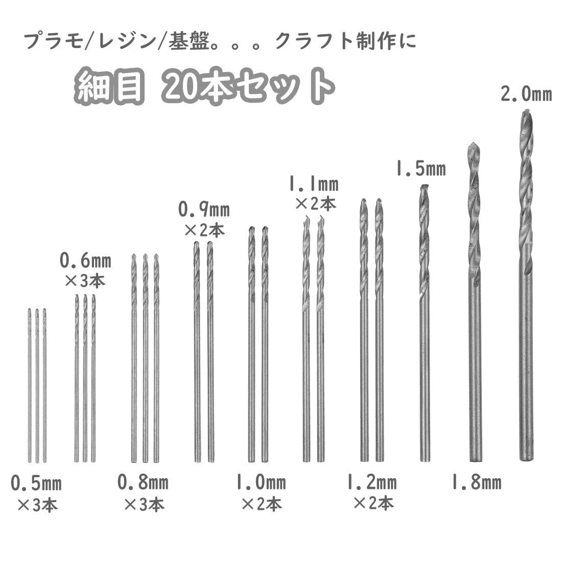 ピンバイス用 付け替えドリル 刃 HSS鋼 細目 0.5mm~2.0mm 収納ケース付き 20本