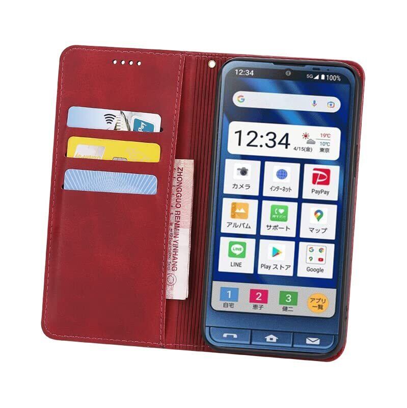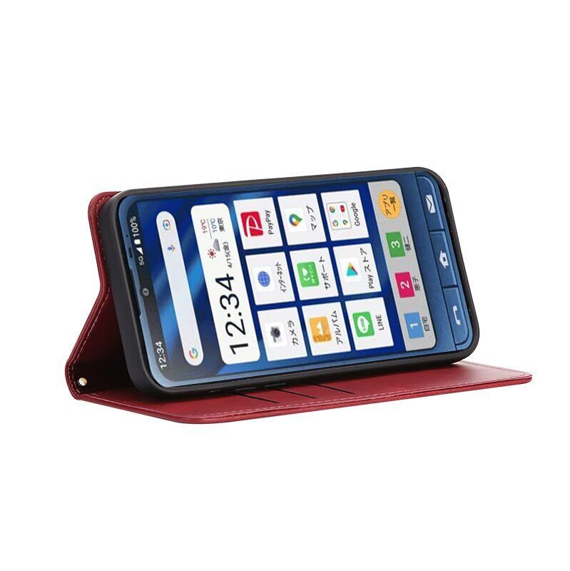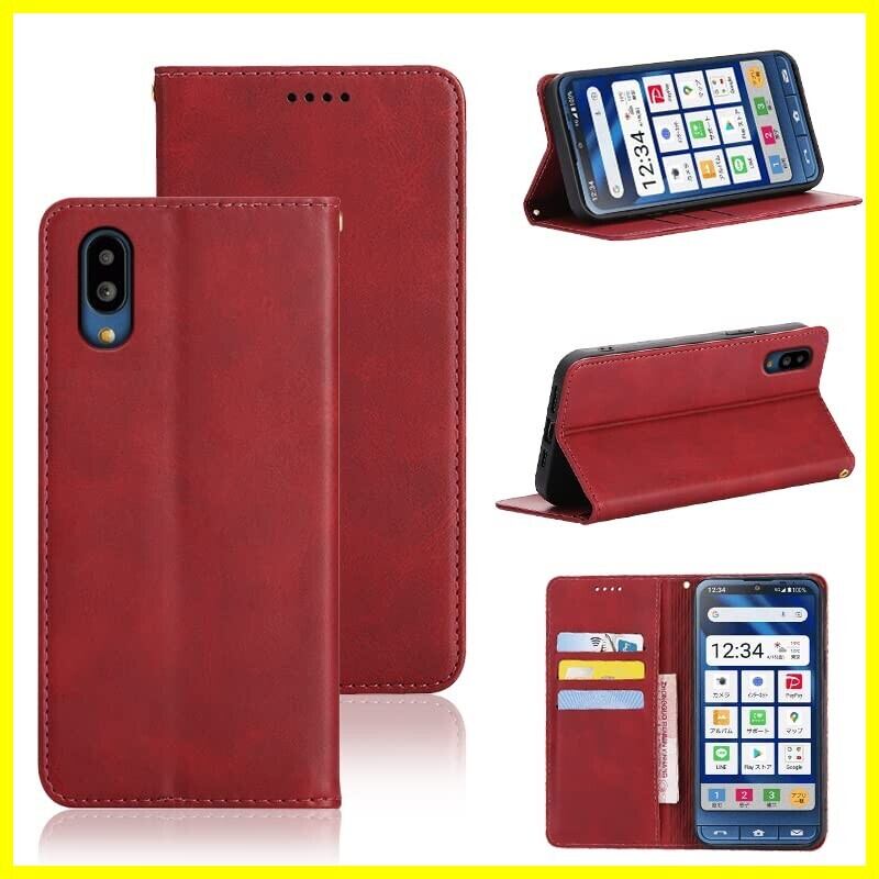 シンプルスマホ6 / シンプルスマホ7 ケース 手帳型 A201SH / simple sumaho6 /simple sumaho7/ BASIO active SHG09/ BASIO active2 SHG12 ケース 手帳型 カバー PUレザー カード収納 財布型 耐衝撃 ケース マグネット スタンド機能付き(レッド)
