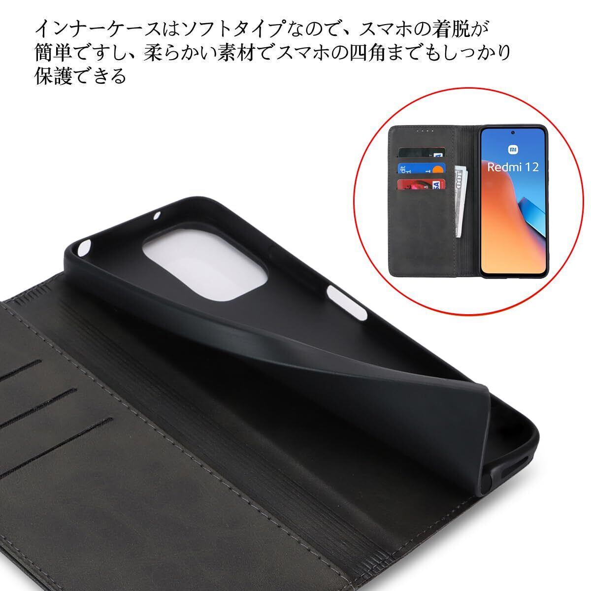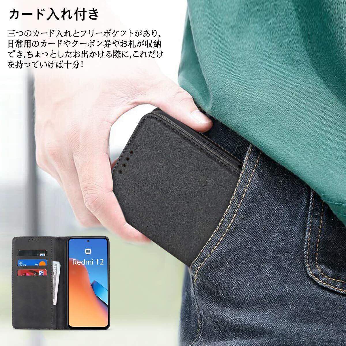 Xiaomi Redmi 12 5G ケース 手帳型 XIG03 au ケース SoftBank A401XM 通用 Redmi12 SIMフリー 対応 手帳 シャオミ レッドミ Xiaomiredmi12 カバー 手帳ケース 携帯ケース 適用 case iCoverCase マグネット カードケース スマホケース 携帯カバー カード入れ スタンド レトロ ブラック