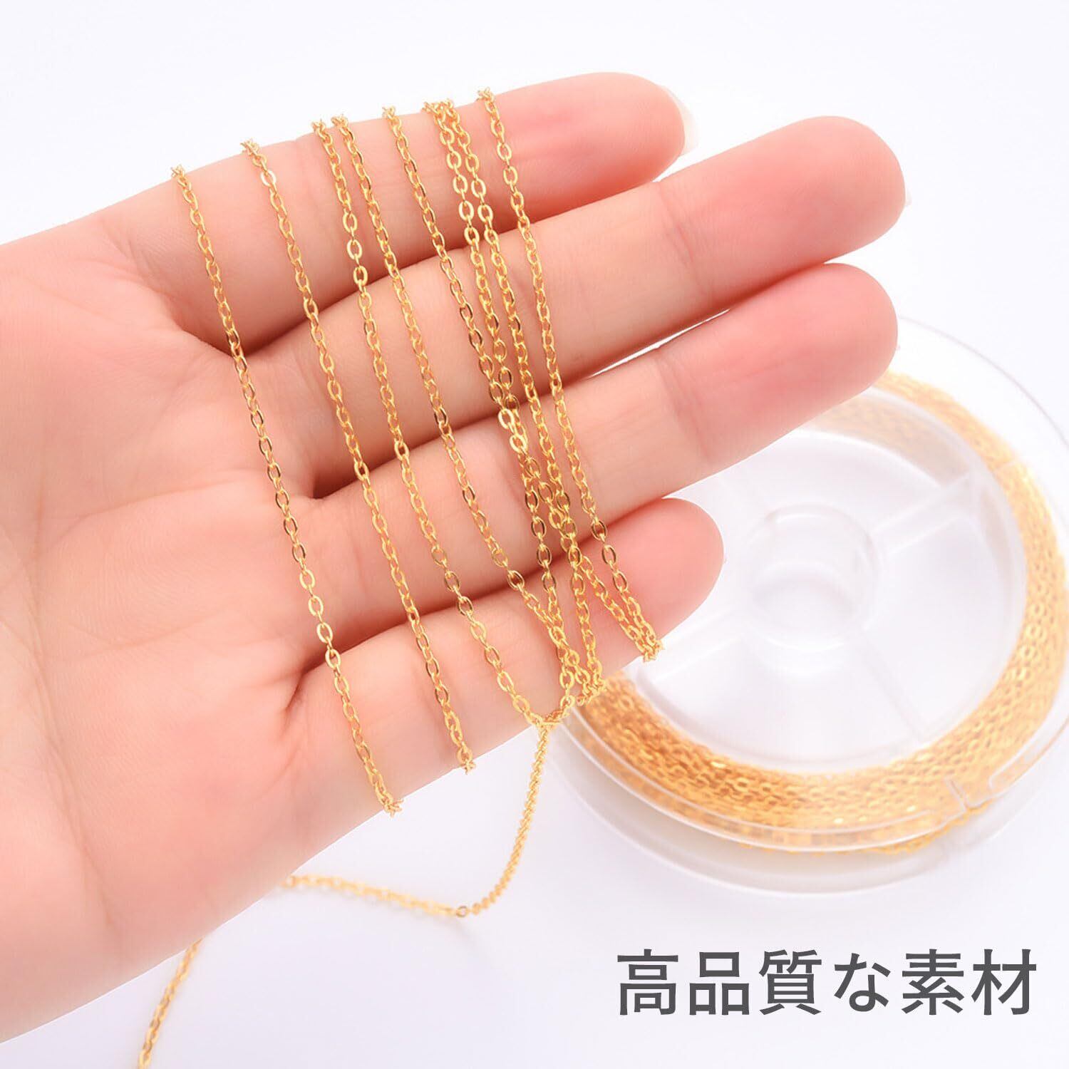 チェーン アクセサリー用チェーン 長さ約5メートル 幅1.5mm ジュエリーチェーン 小豆タイプ リングチェーン ジュエリー用 クラフト手作り用品 DIY用 ハンドメイド アクセサリーパーツ 基礎パーツ ロブスター・クラスプ10個とジャンプ・リング30個付き