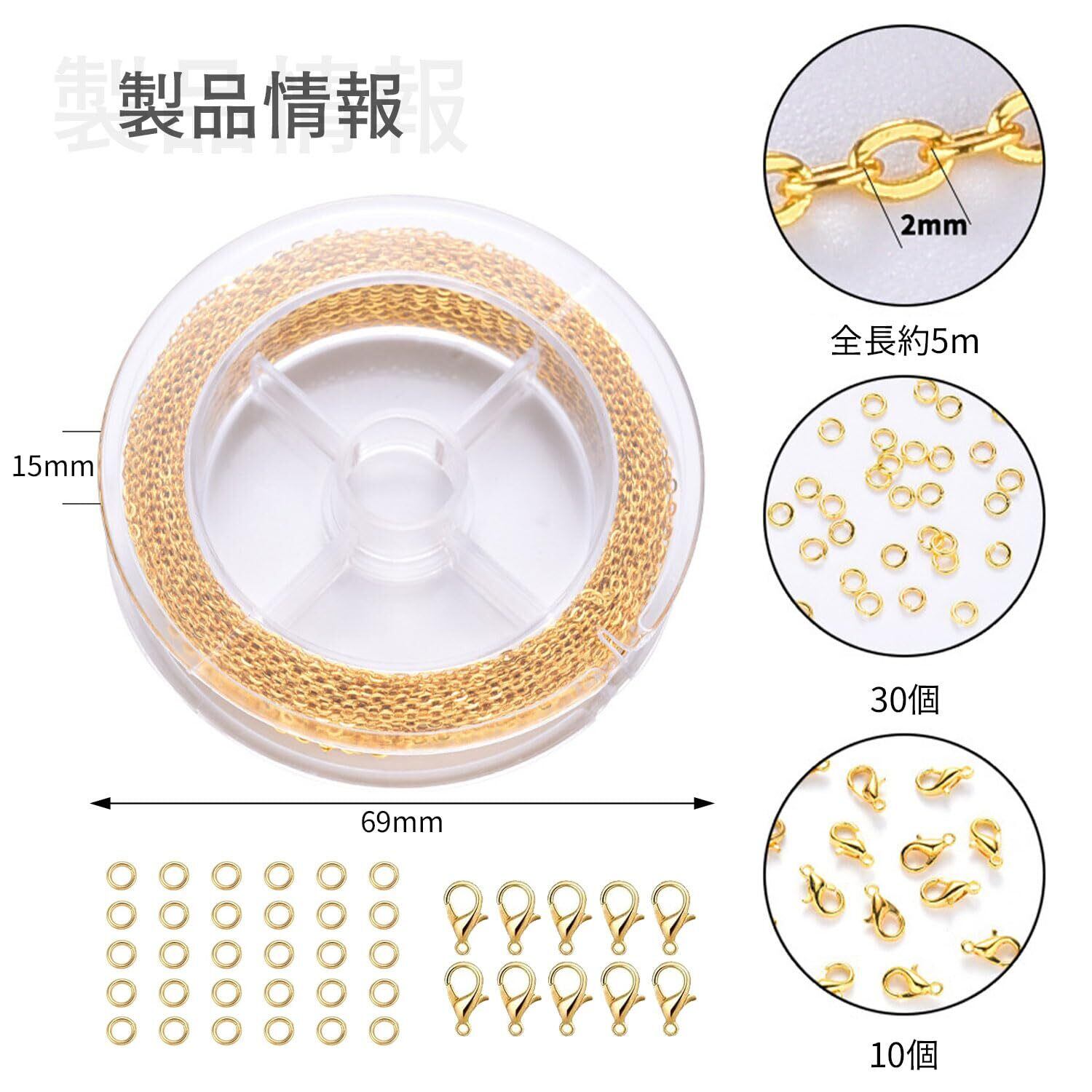【スーツ内容】長さ約5m、幅1.5mmのアクセサリー・チェーン1巻、ロブスター・クラスプ10個、ジャンプリング30個。