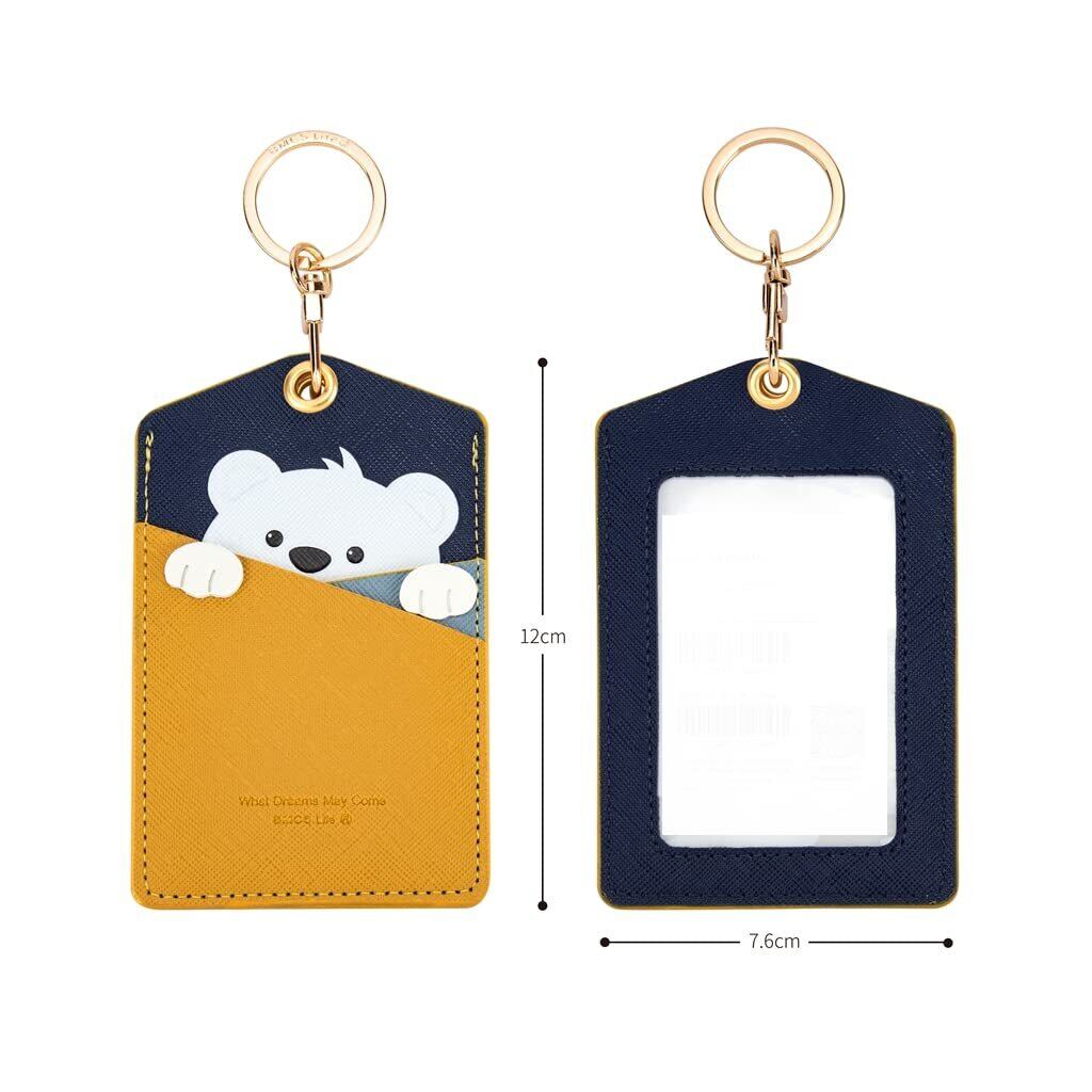 [H HARUCO] 可愛い アニマル 定期入れ 子供 キーリング パスケース レディース 縦型 バッグチャーム PU レザー 革 キャラクター 9種 (シロクマ(覗き))