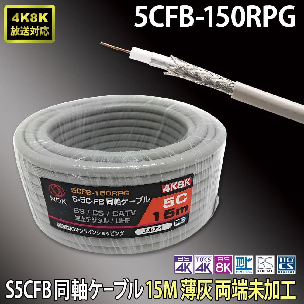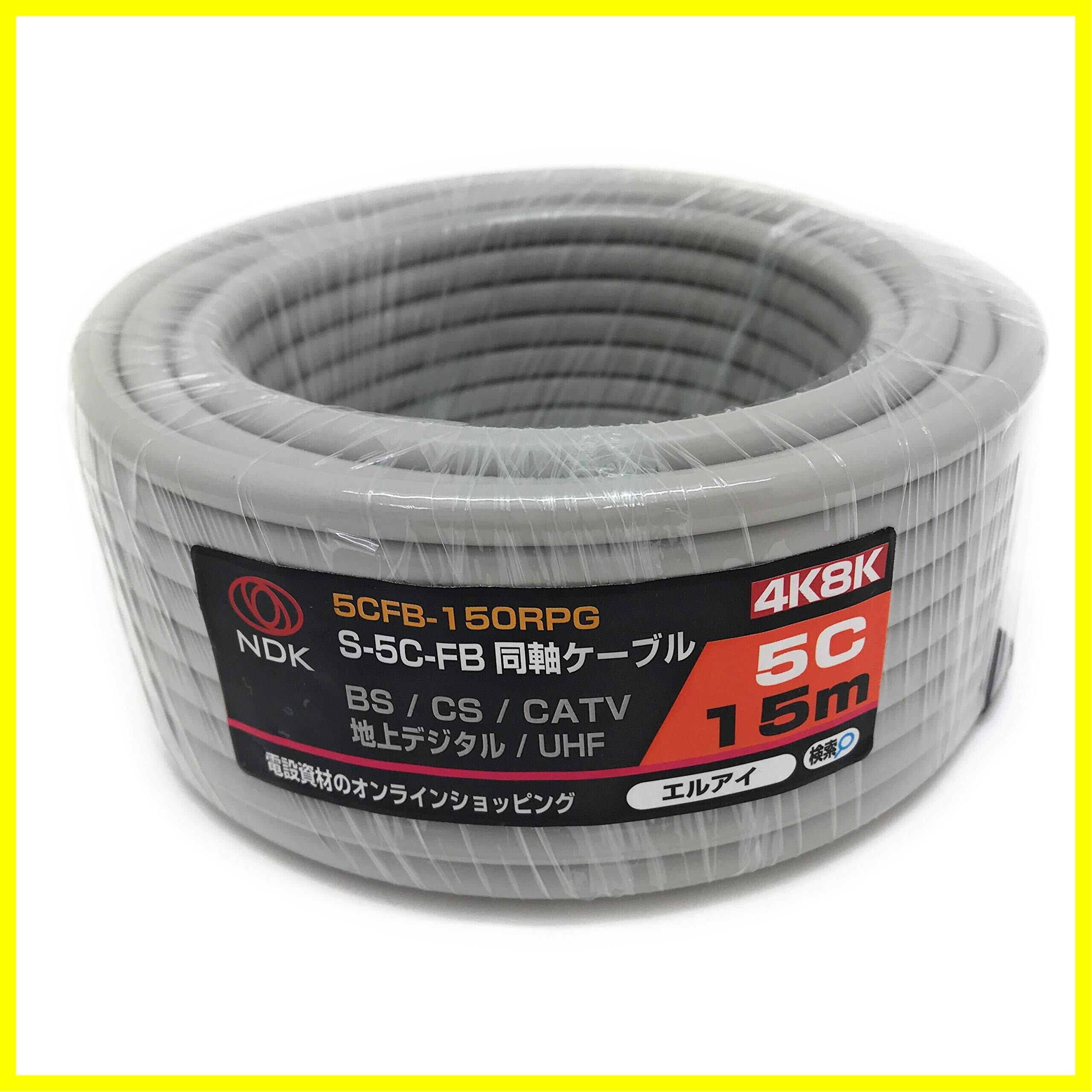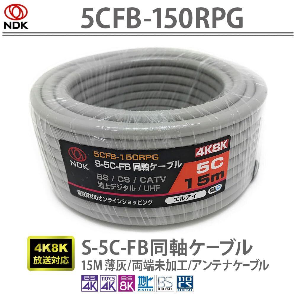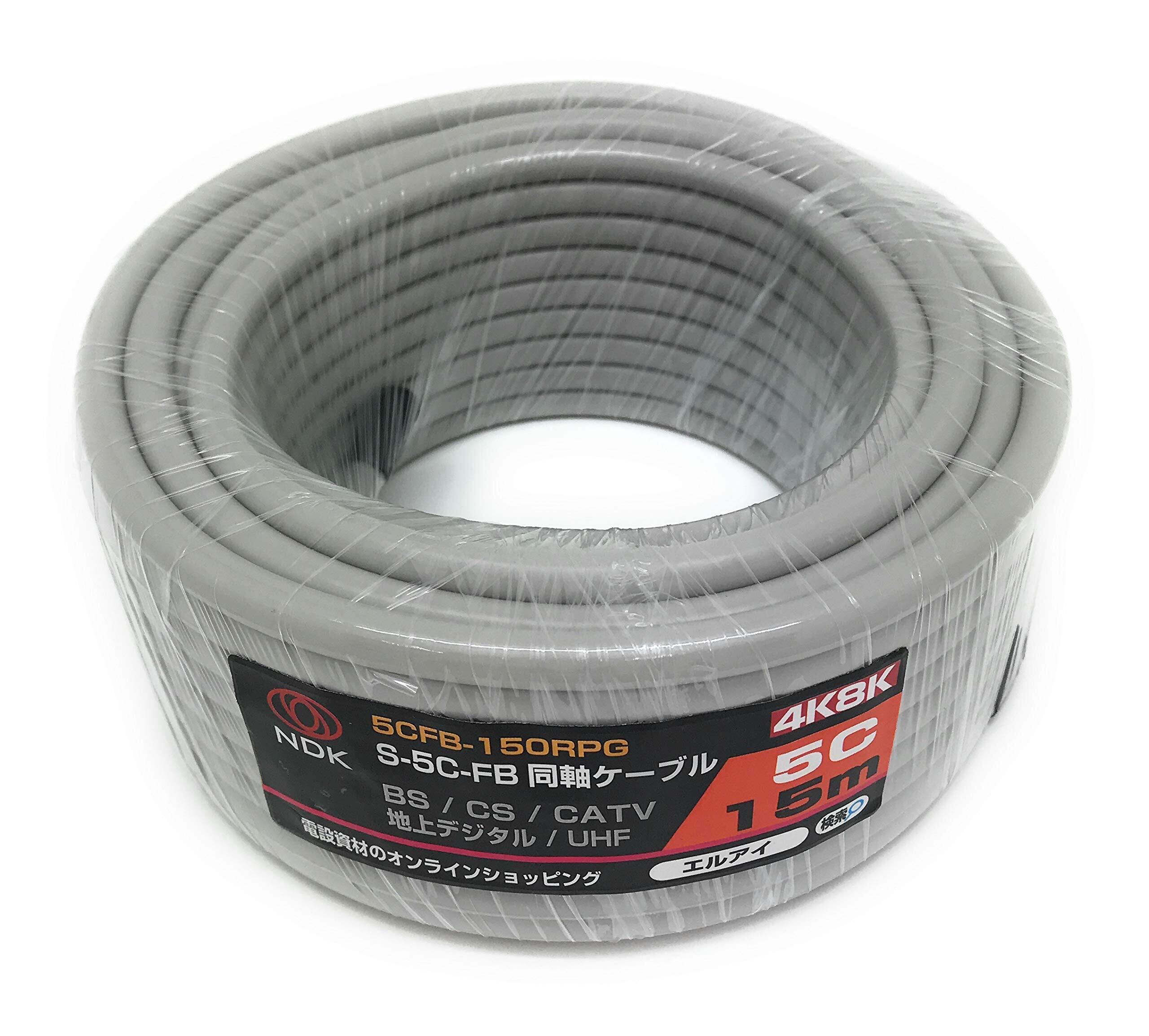 二幸電気工業 S5CFB 同軸ケーブル 15m 薄灰 (2K 4K 8K BS CS CATV 地デジ) アンテナケーブル 両端未加工 (5CFB-150RPG)