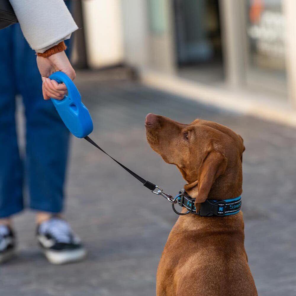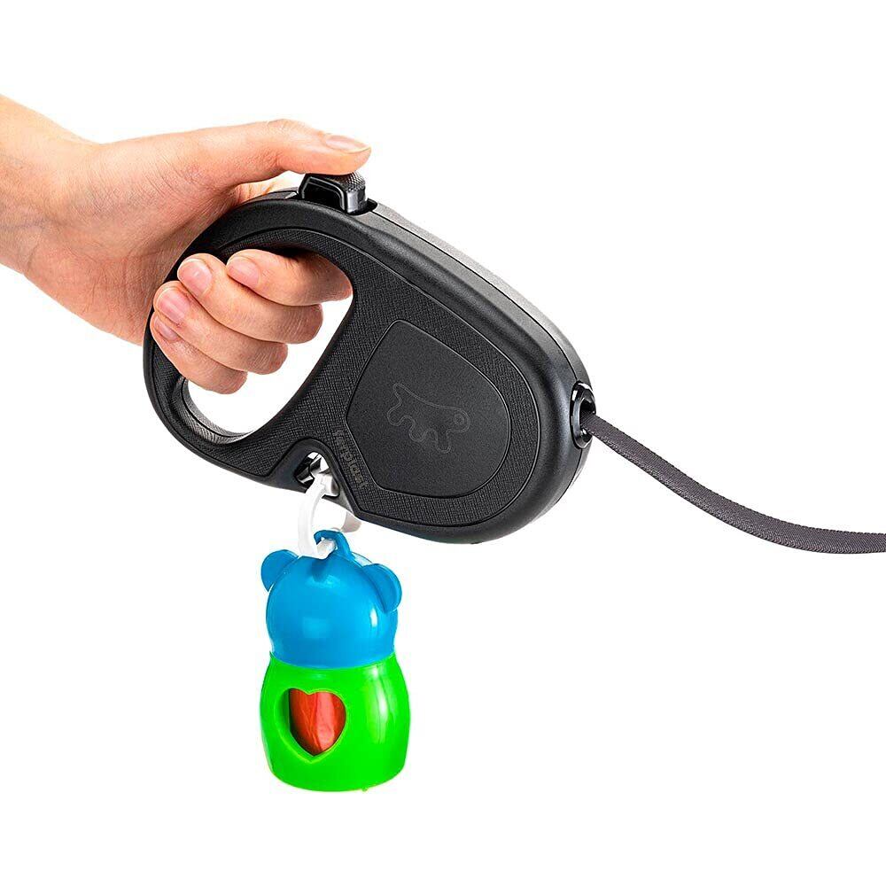 ワンちゃんの動きに合わせて自在に調節できる伸縮リード。