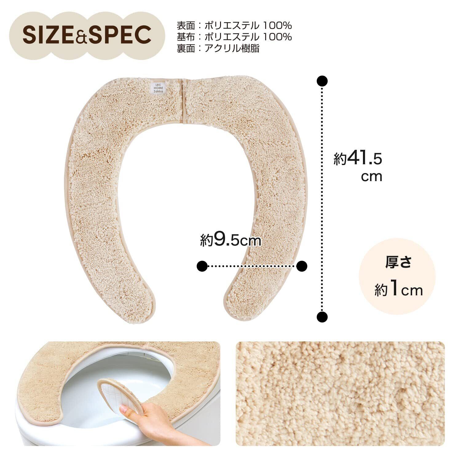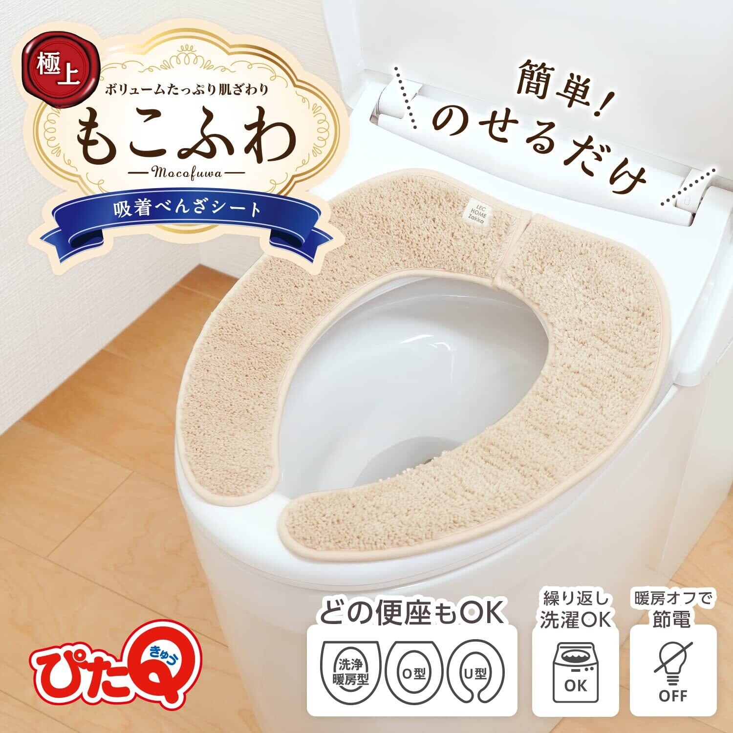 レック(LEC) ぴたQ 吸着 べんざシート 極上もこふわ タフト生地 (ベージュ) 全型対応/貼るタイプ/洗濯OK/薄型パッケージタイプ