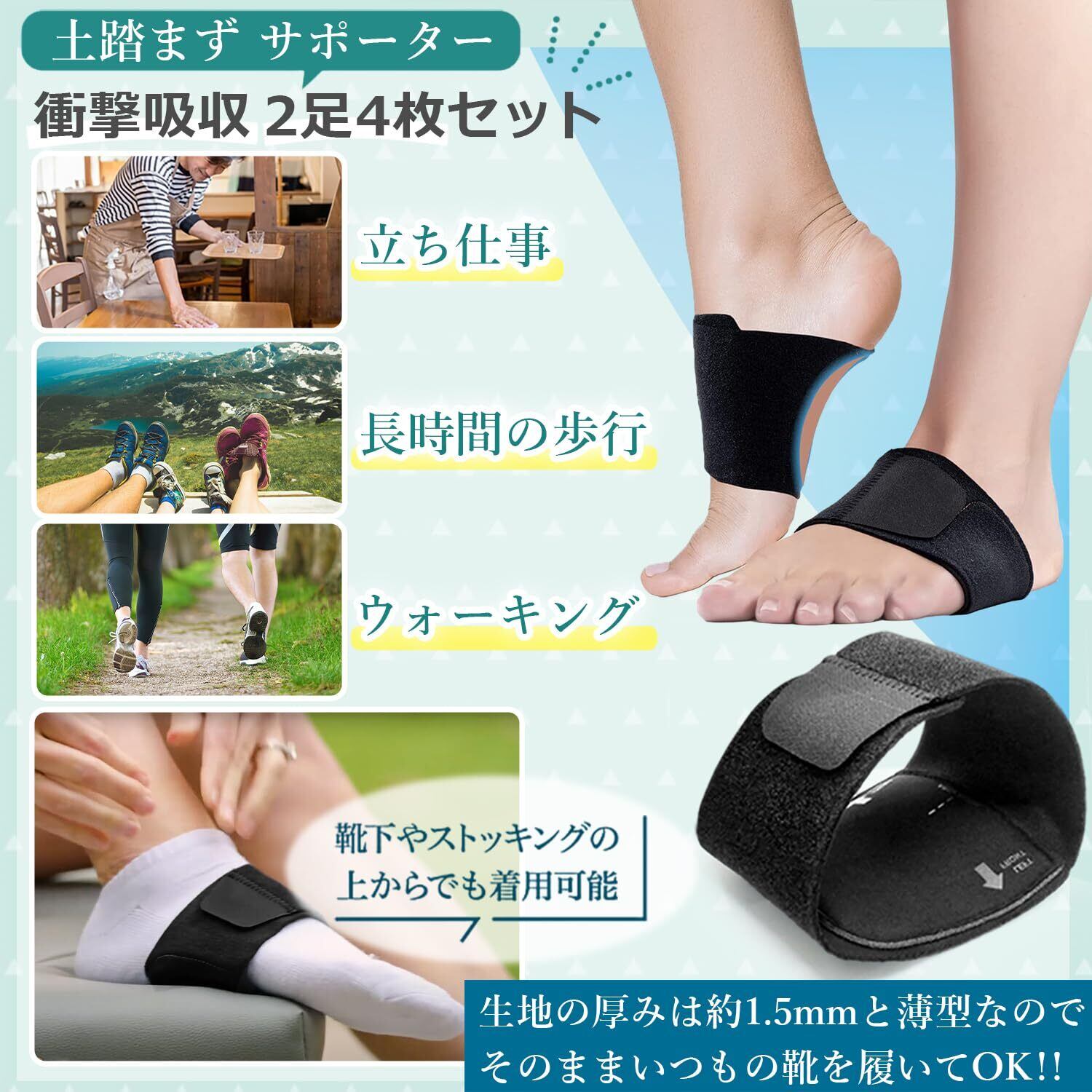 土踏まず サポーター 足裏サポーター 2足4枚セット あし 土踏まず インソール サポーター衝撃吸収 負担 軽減 歩行 薄型設計 快適 伸縮性 仕事 買い物 スポーツ 抗菌 防臭