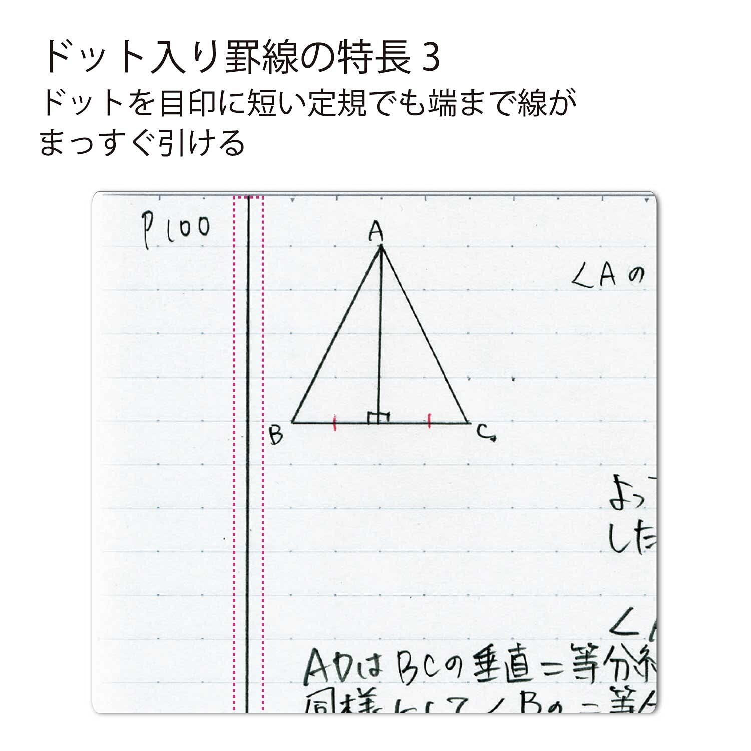 罫線上に等間隔に並んだドットを活用することで、ノートを美しく書くことができ、書いた後見返しやすく、効率的に学習することができる。