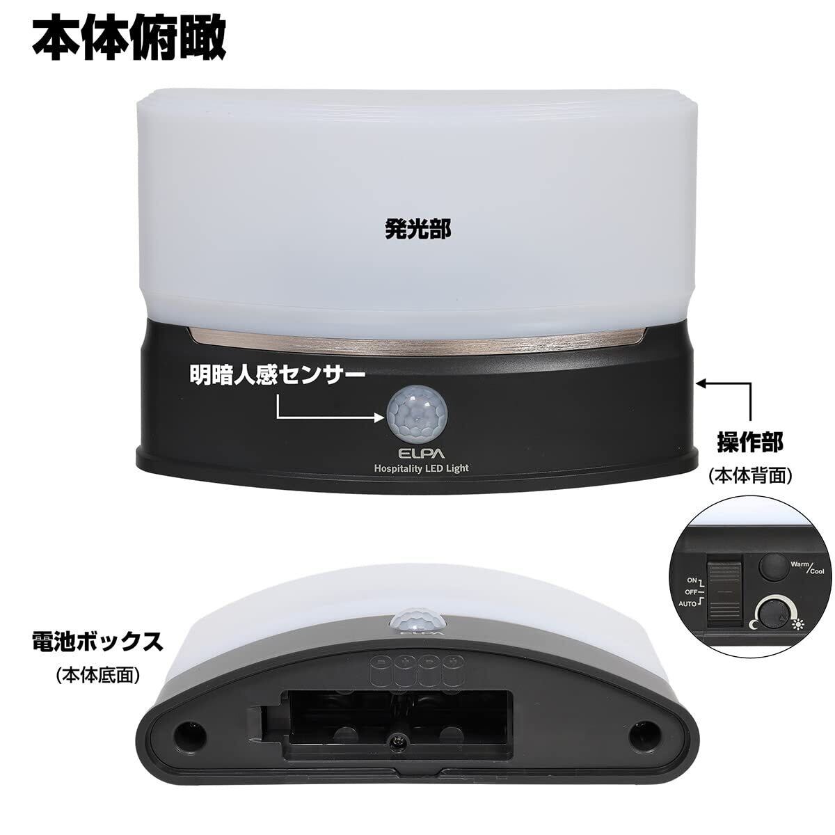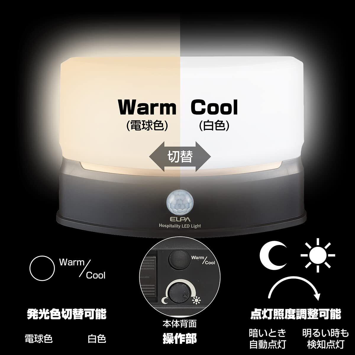 エルパ ( ELPA ) もてなしライト ( スリム形 / 電球色・白色 / 電池式 ) 人感センサー / ライト / 室内 ( HLH-2201)