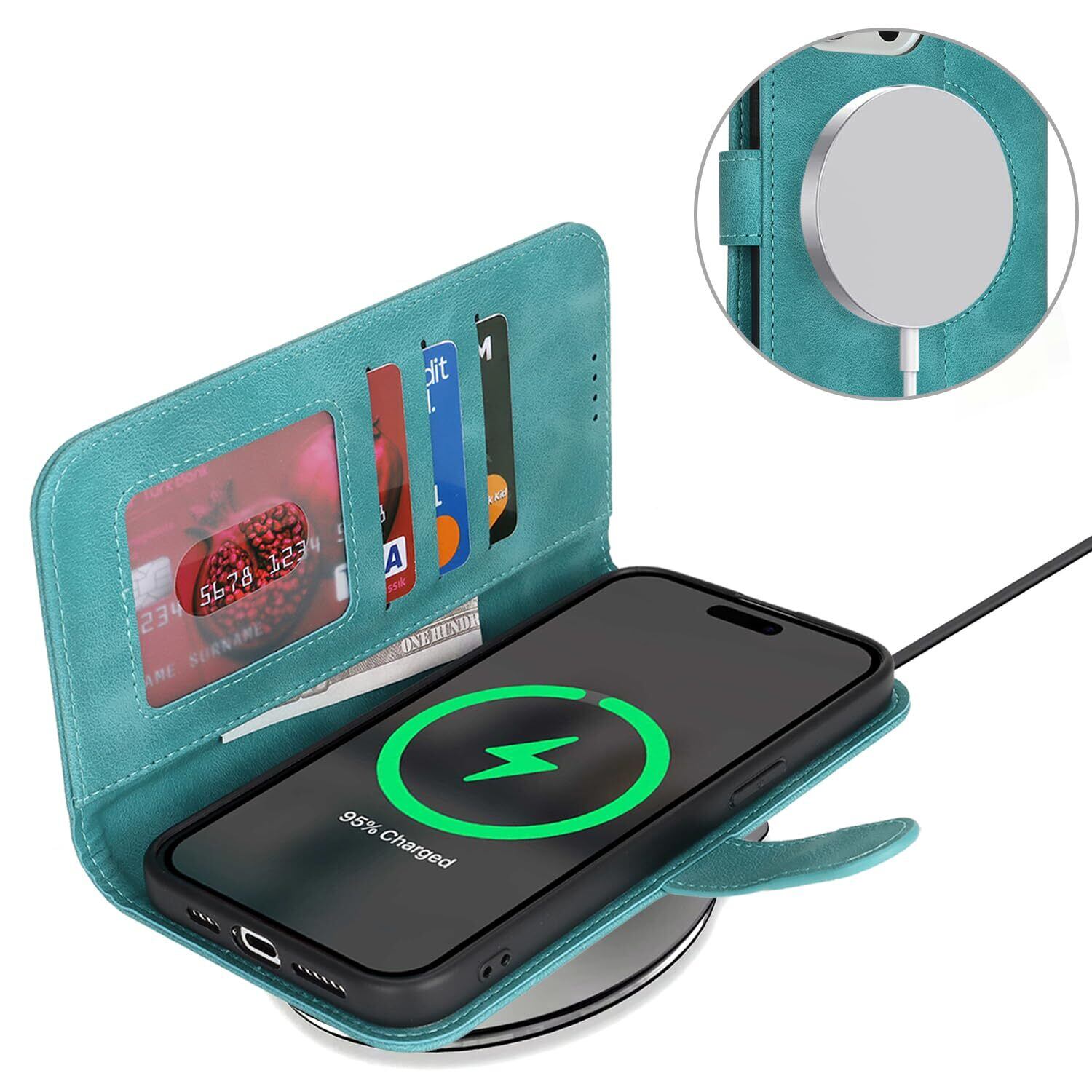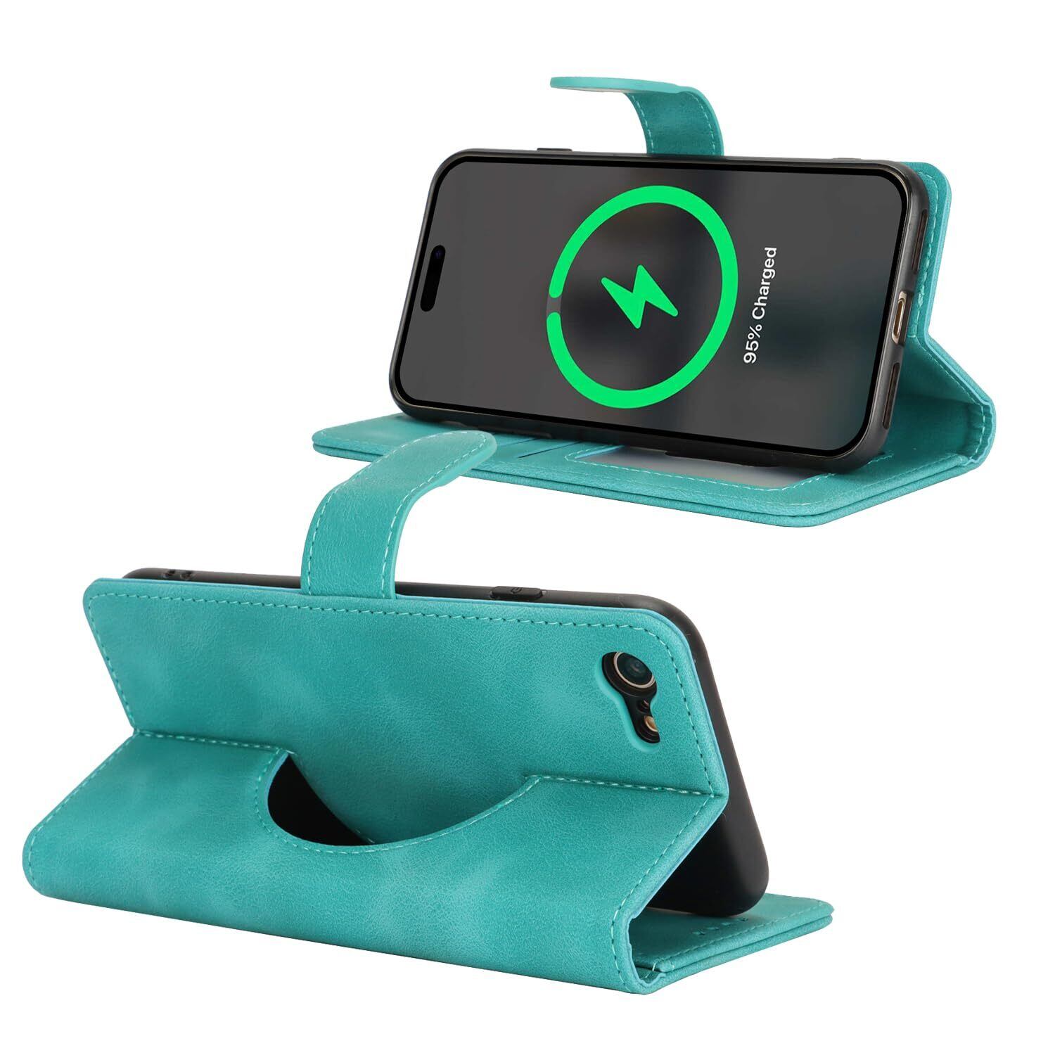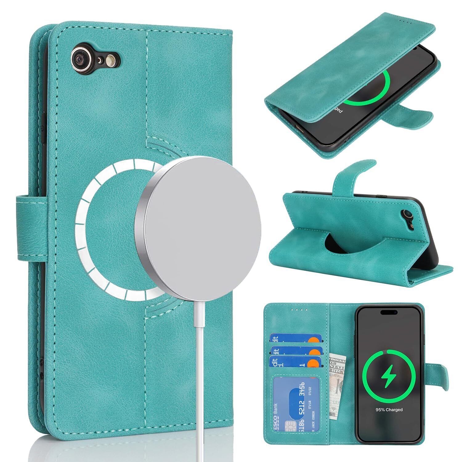 SunYoo アイフォン for iPhone SE 2022 / SE 2020 ケース 手帳型 Magsafe 充電対応 2枚強化ガラスフィルムセット for iPhone 8 7 ケース 財布型 カバー Case Cover 携帯スマホカバー カード収納 - グリーン