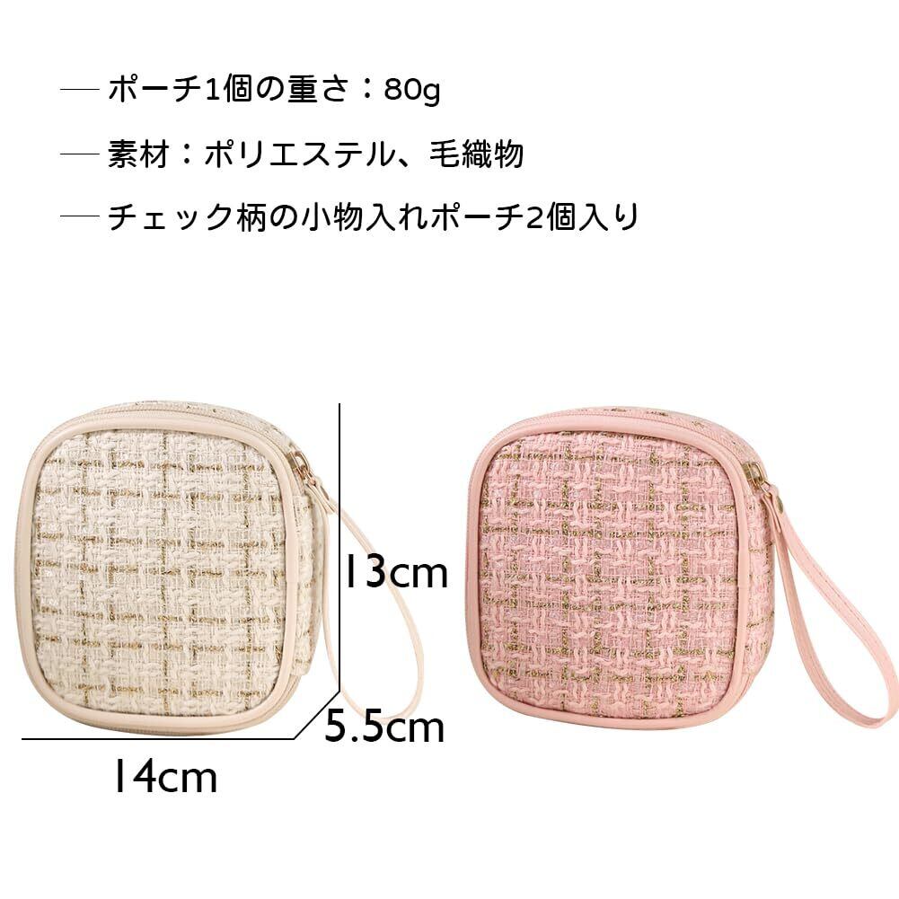 【仕様】■チェック柄の小物入れポーチ2個入り、■素材:ポリエステル、毛織物。■サイズ:14×5.5×13cm。■ポーチ1個の重さ:80g。