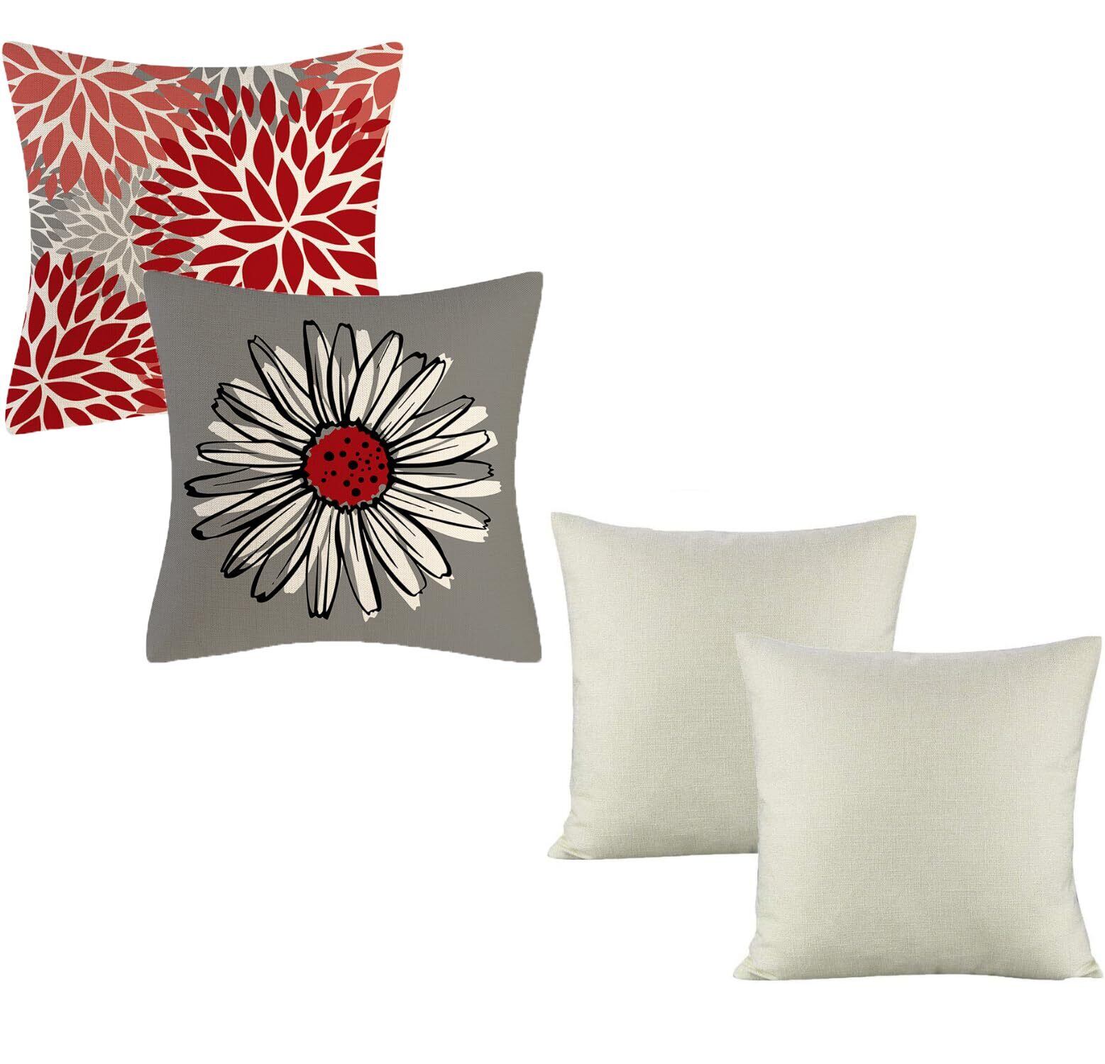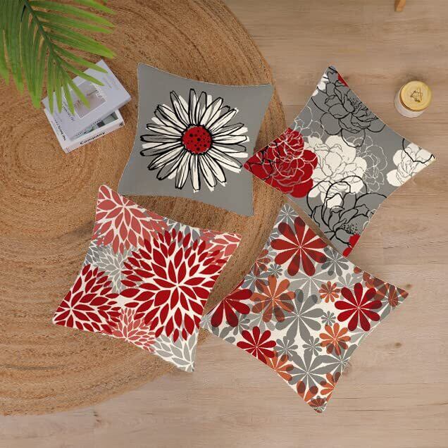 【プレミアム素材】4つのデイジーの赤い葉 ピローケースはつの高品質のリネン(非常に柔らかい短いベルベット素材)でできており、より良い視覚体験と快適な感触を持っています。