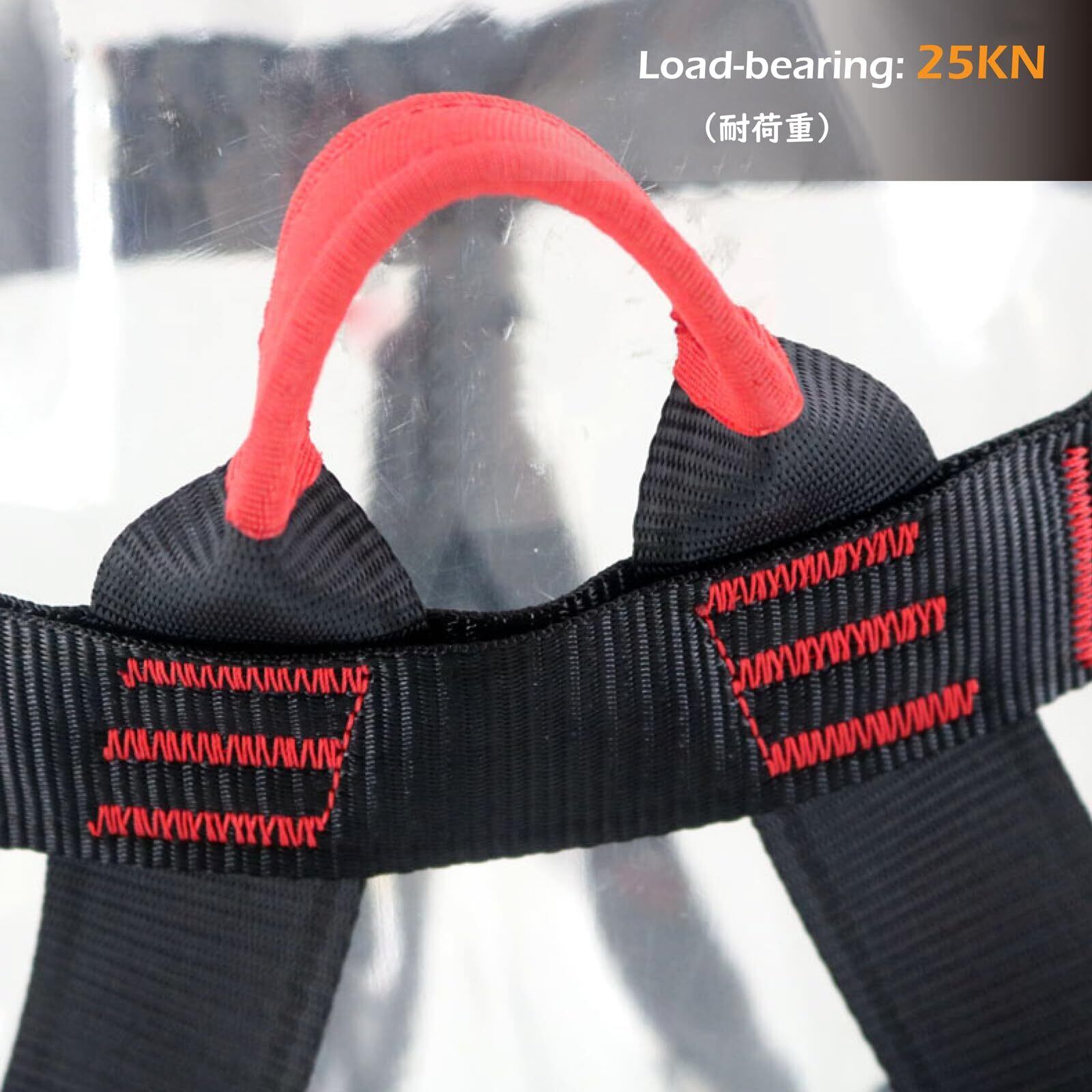 【耐荷重】-- 25KN(2500KG)、耐摩耗性に優れ、快適感向上のロッククライミングハーネス