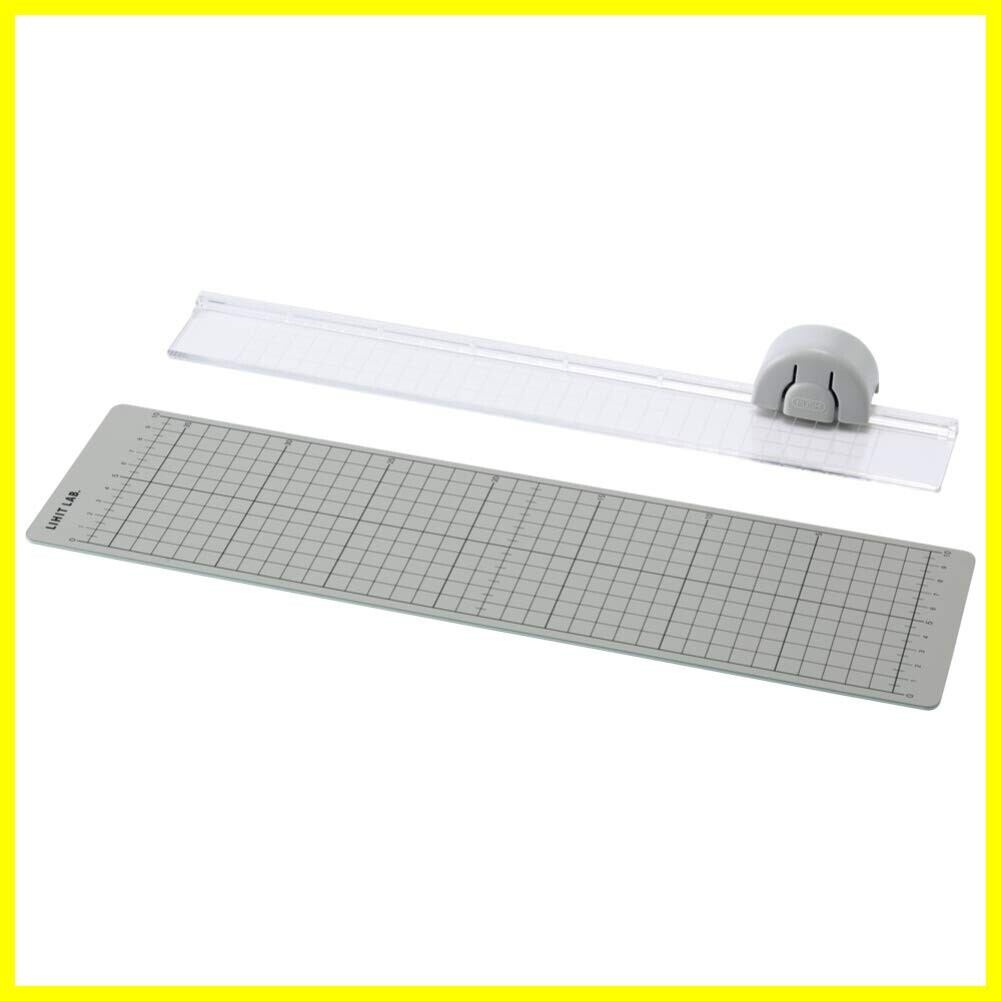 【使い方】カッターマットの上に紙を置き、切りたい位置にベースの端を合わせて、ベースをしっかり押さえます。サイドにあるスライダーのロック解除ボタンを押しながら、スライダーを下に押し付け、紙が切れるまで往復させてください。