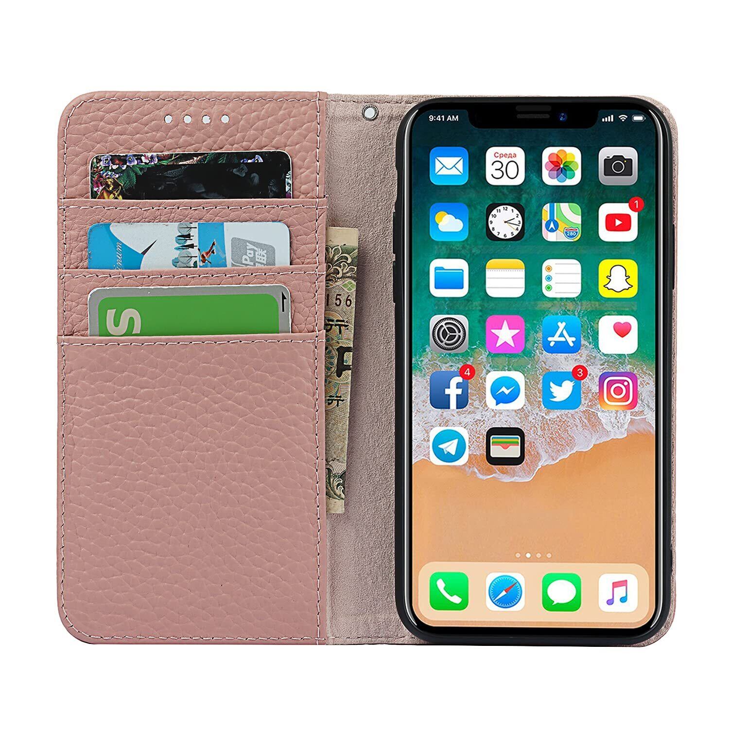 Eastwave アイフォン for iPhone XS Max ケース 牛革 本革 手帳型 for iPhone XSmax 財布型カバー 本革 手帳型 携帯スマホカバー 人気 おしゃれ 内蔵マグネット 耐汚れ 耐衝撃 カード収納 軽量 人気 -ピンク