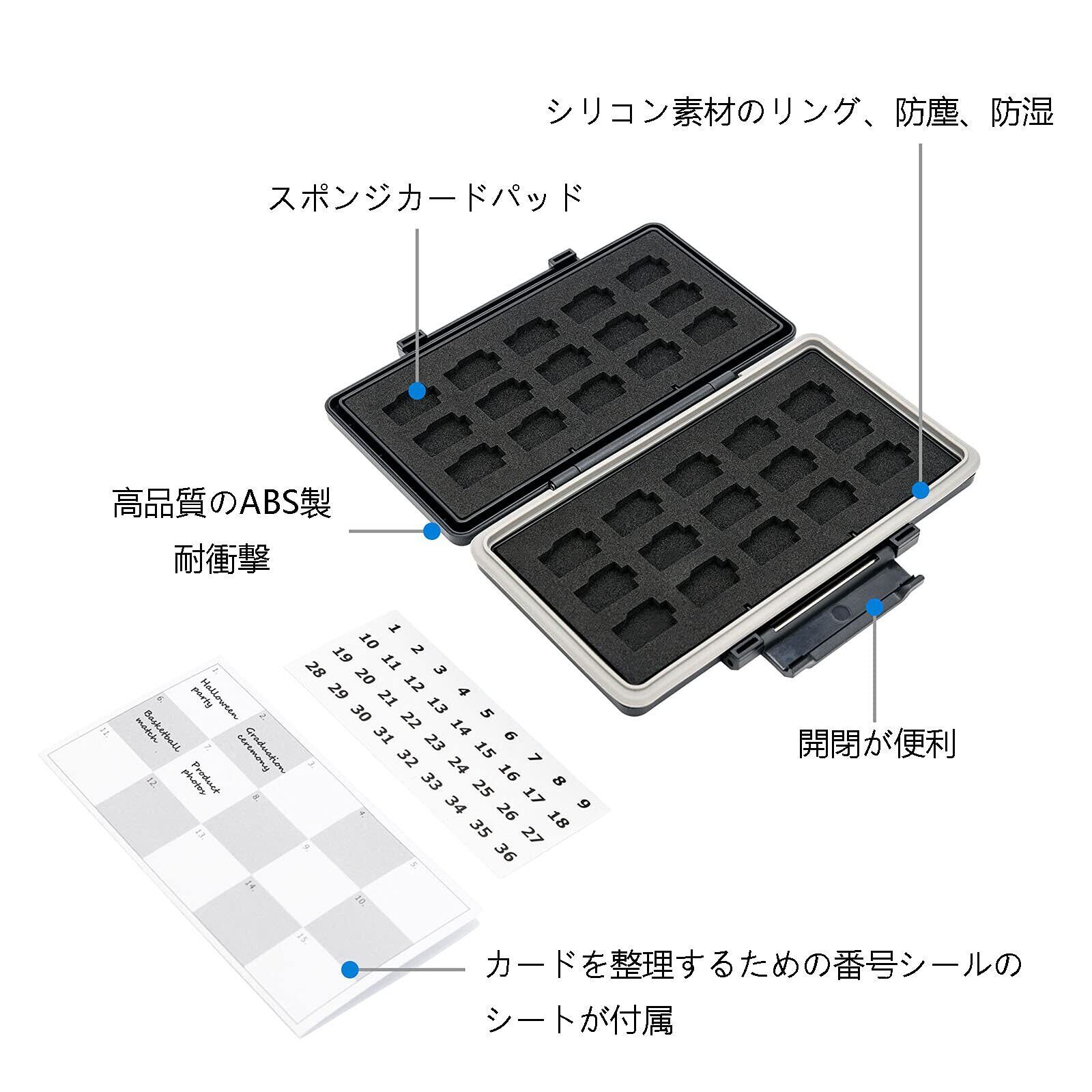 JJC 大容量 30 スロット MicroSD/MSD カードケース 耐衝撃 防塵 防湿 カード整理番号付き メモリーカードケース