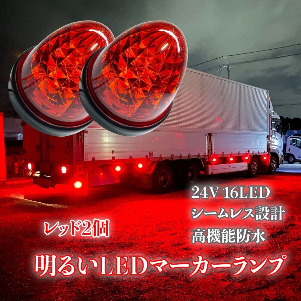Discover winds 24V マーカーランプ 高輝度 16LED サイドマーカー 高機能防水 強弱発光 インナーメッキリフレクター 明るい 省エネ イルミネーション カスタム 2個セット (レッド)