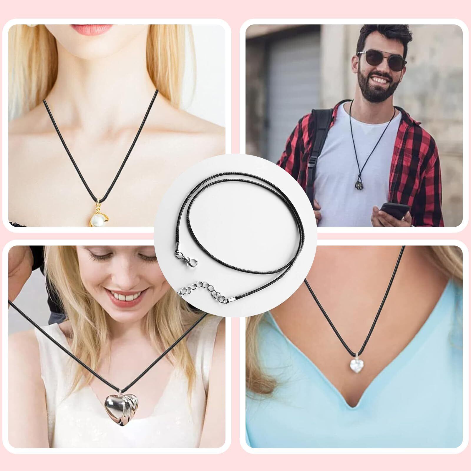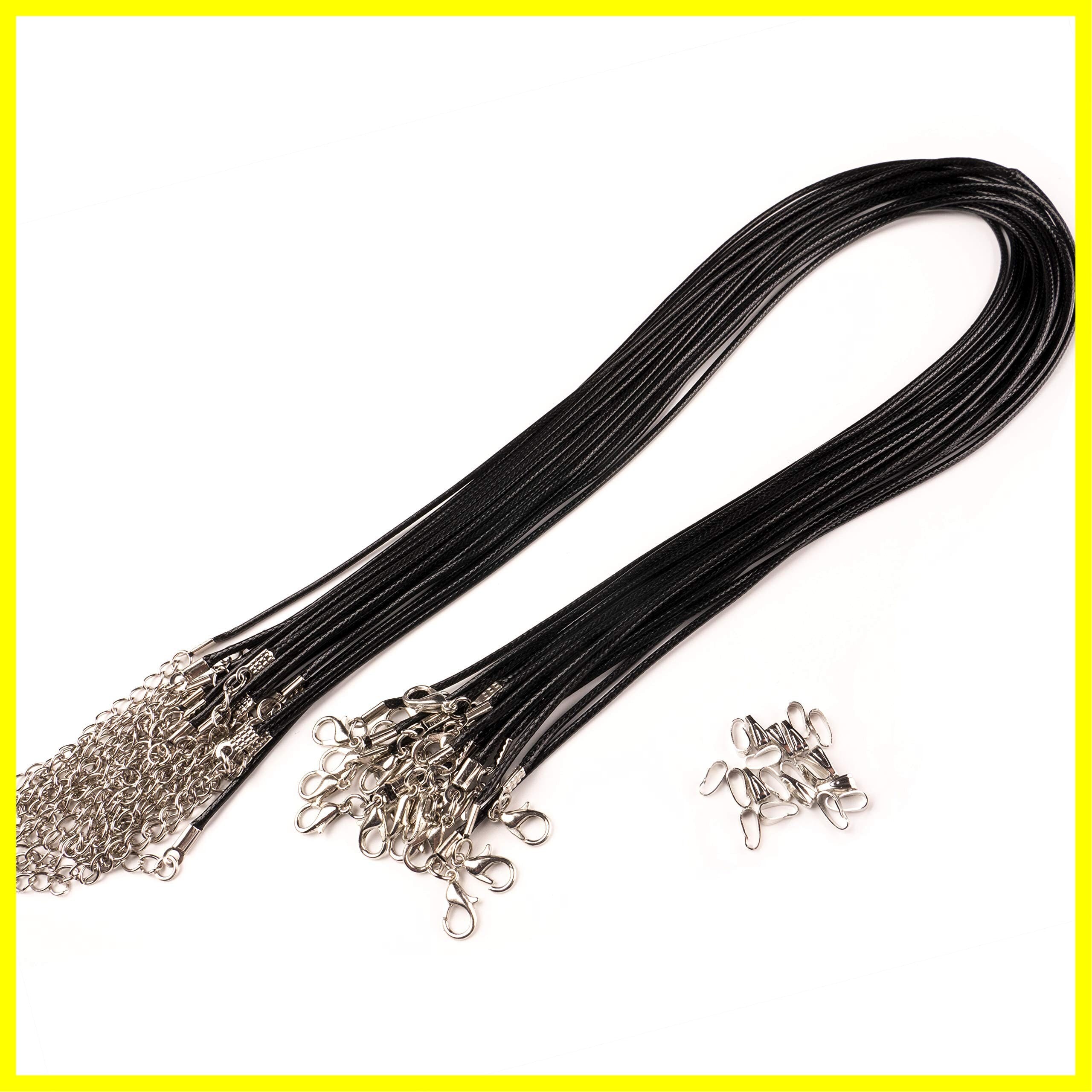 [BEAUTY PLAYER] ネックレスチェーン 合皮 レザー チョーカー 紐 金具付 20本セット 黒×シルバー/カニカン アジャスター付き バチカン20個 手芸 ハンドメイド材料