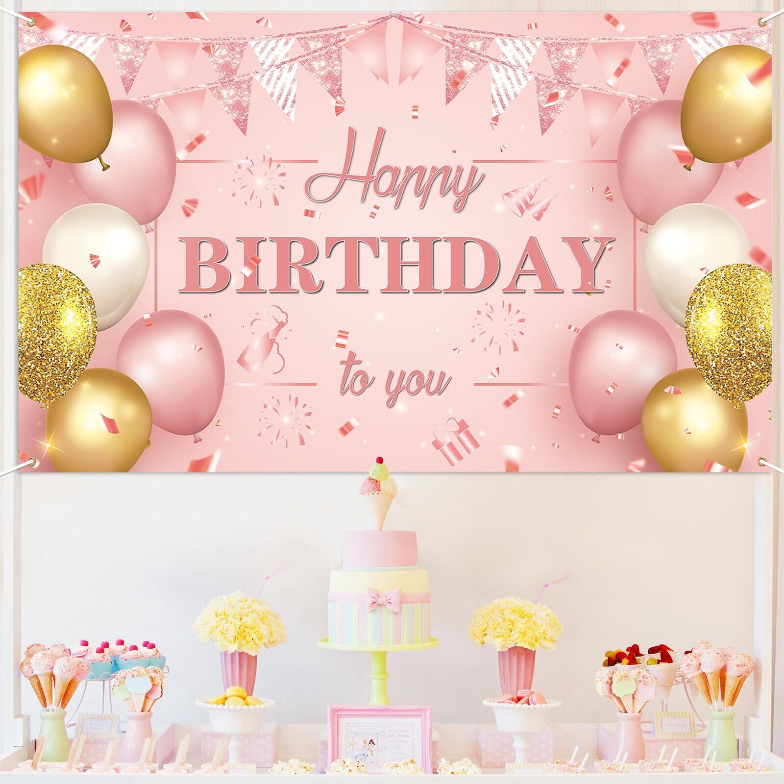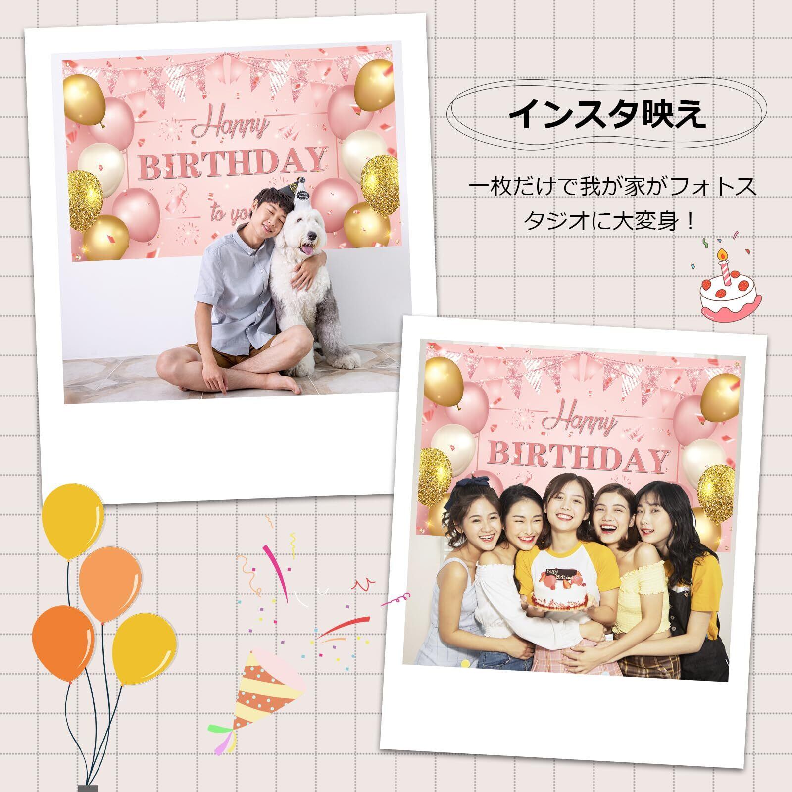 Paready バースデー タペストリー 誕生日 飾り付け 壁掛け 大判 フォトポスター 写真背景 壁飾り Happy Birthday パーティー 飾り おうちスタジオ シンプル おしゃれ 装飾 大人 女の子 ローズピンク