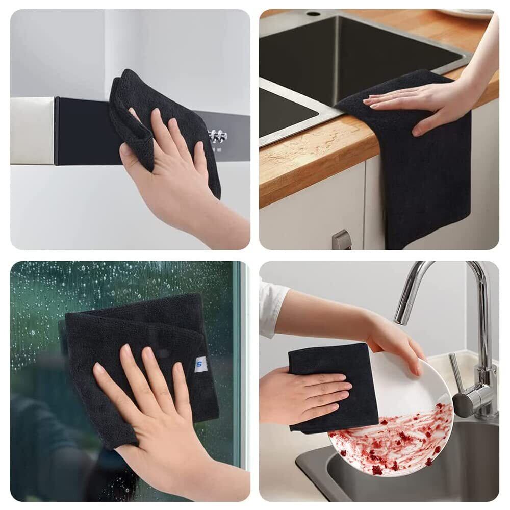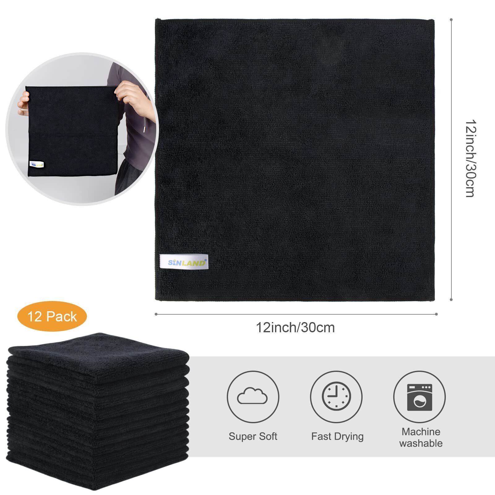 Sinland マイクロファイバー クリーニング クロス ふきん 掃除 タオル (ブラック 30cmx30cm 12枚)