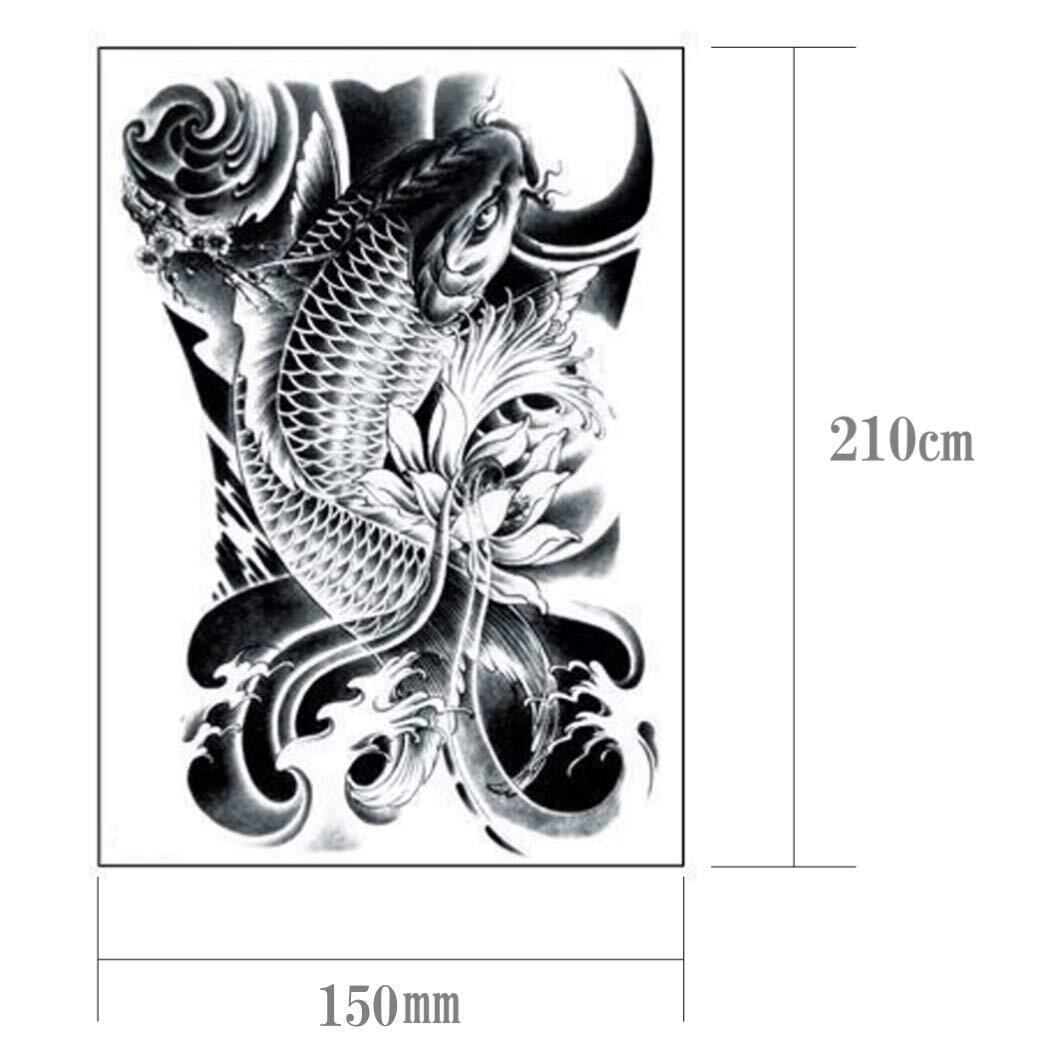 タトゥーシール 鯉 錦鯉 刺青シール ボディーステッカー 黒 21cm×15cm