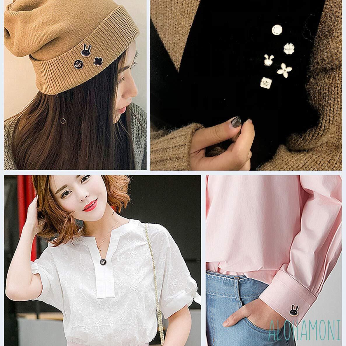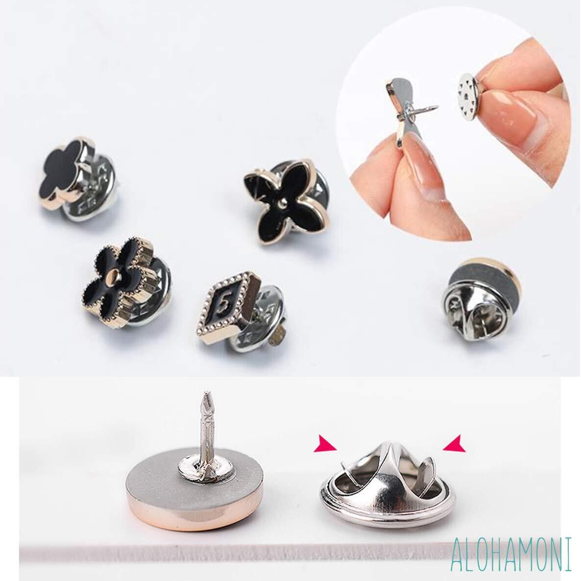 ALOHAMONI (アロハモニ) ブローチ タックピン 10個 セット ピンブローチ ピンバッジ ラペルピン ネクタイピン タイタック ハットピン ボタン 縫製不要 レディース メンズ キッズ ユニセックス (ブラック)
