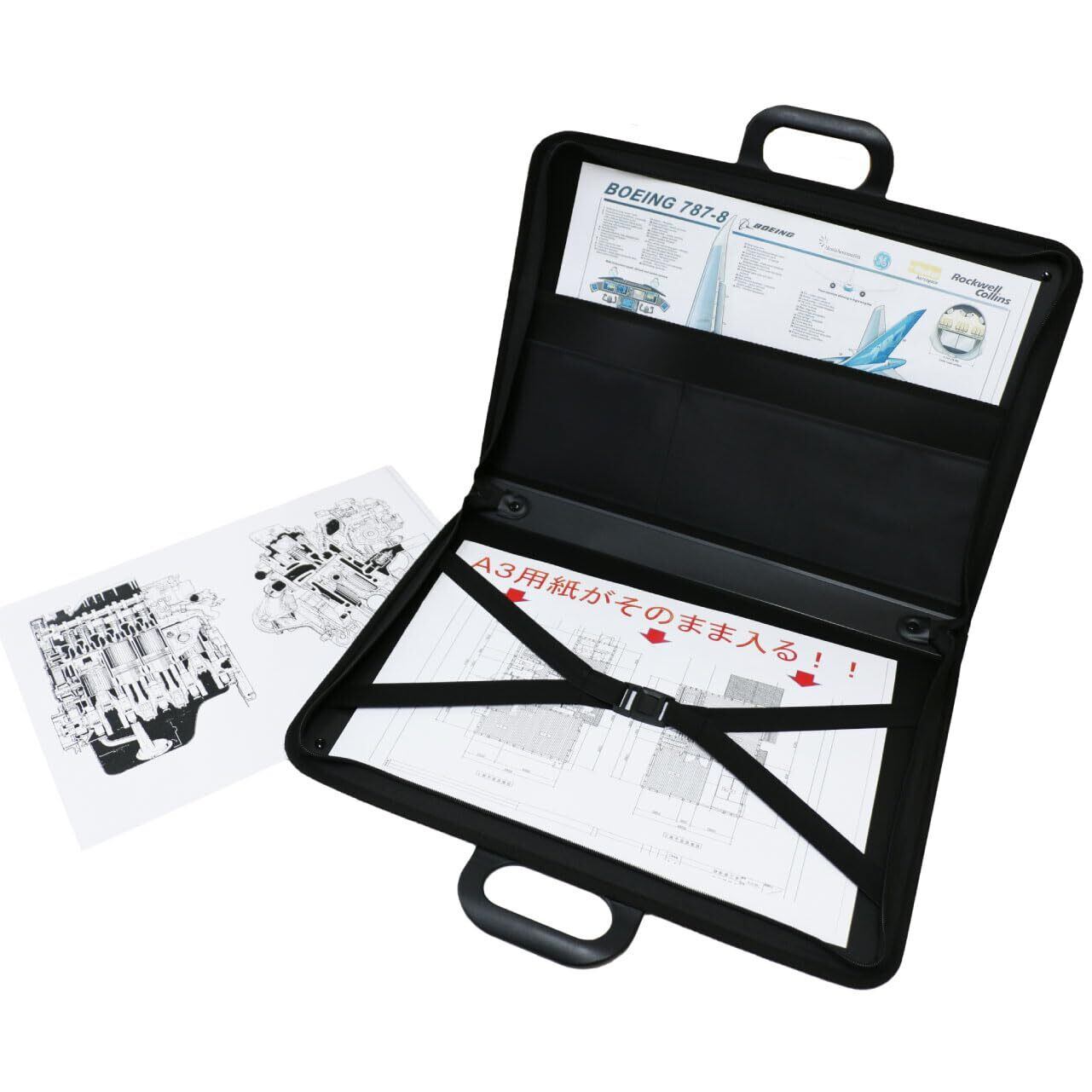大きな作品・版下・図面も折らずに収納。持ち運びもラクラク。