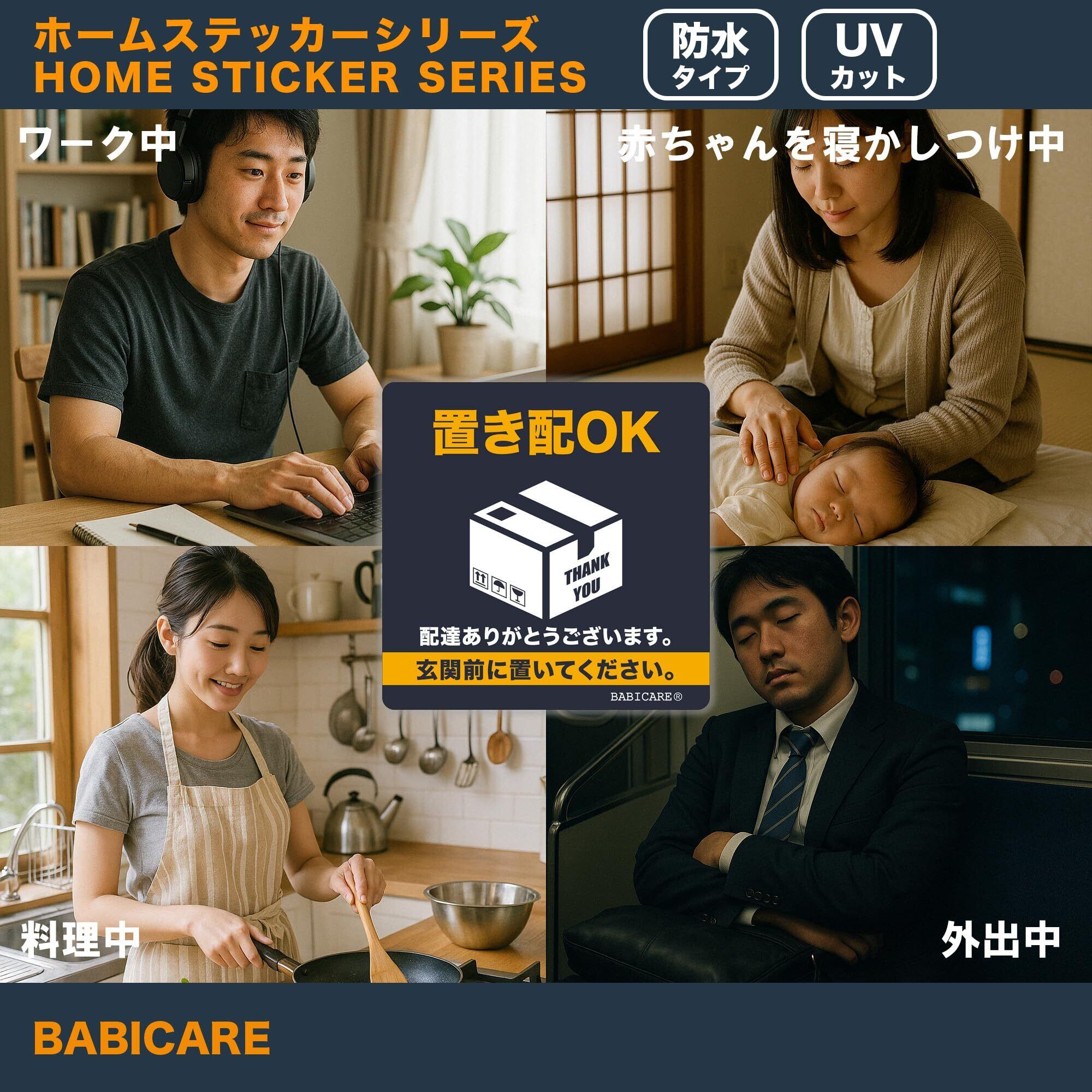 【BABICARE】 置き配OK 玄関前に置いて ステッカー シール プラスチック製 高耐候/防水/耐光/UVカット/ 80X80mm 賃貸住宅 賃貸マンション・アパート (紺)