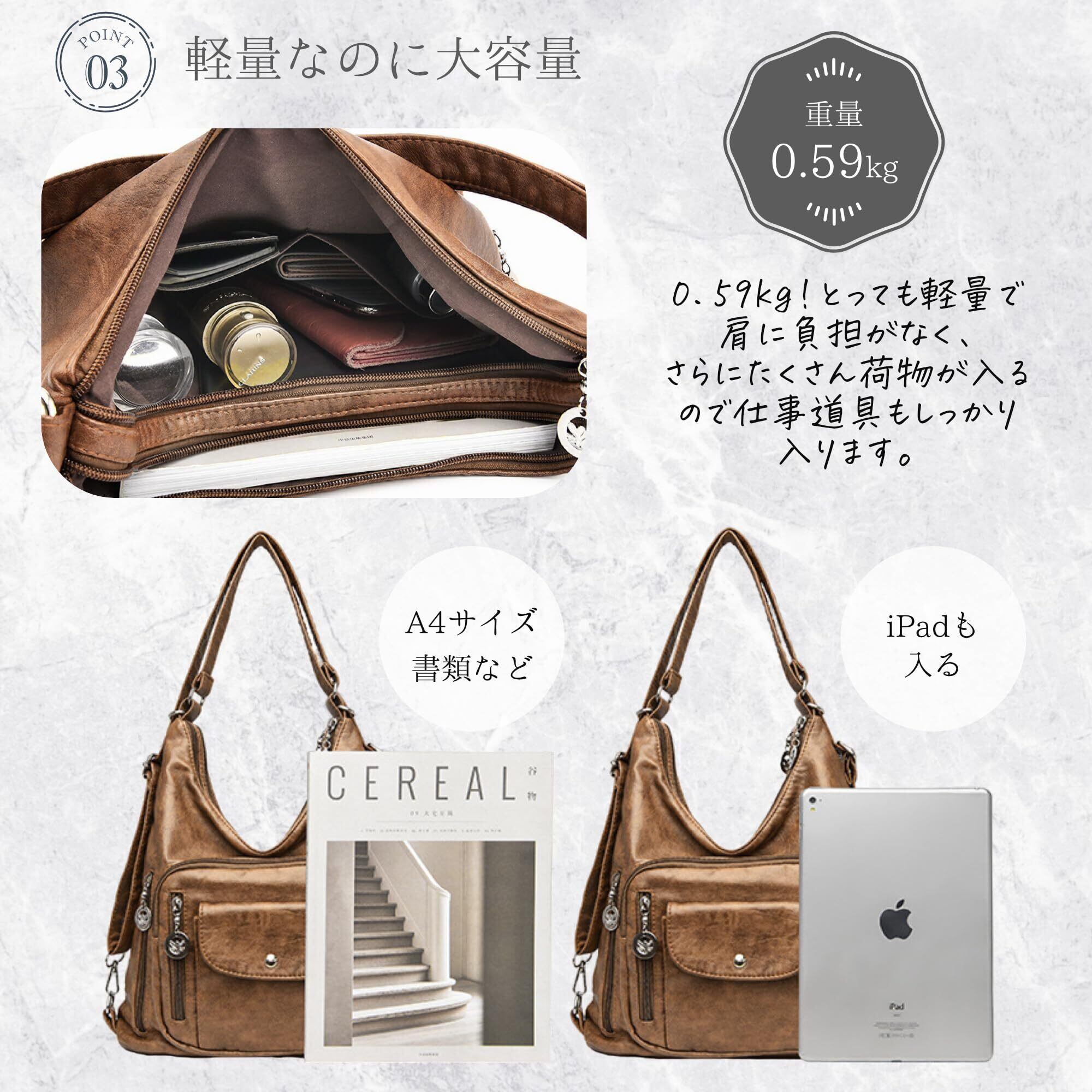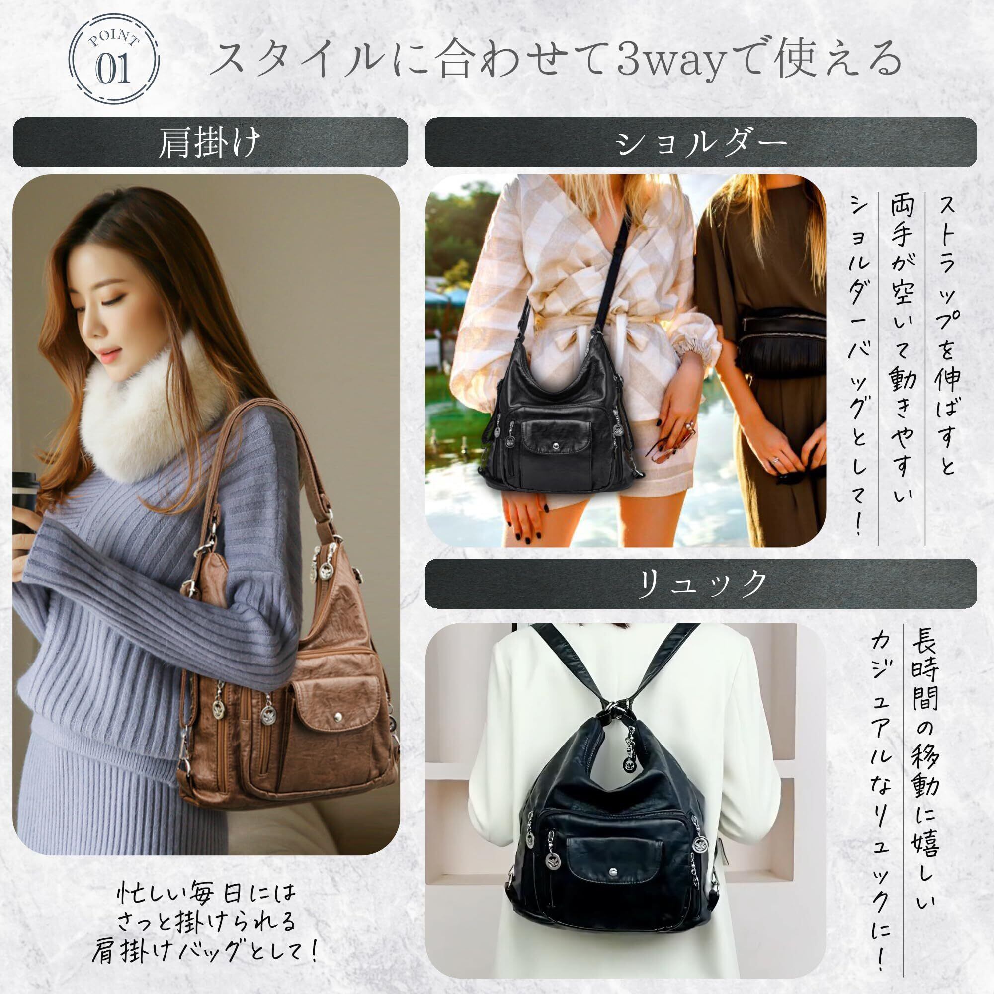 ・【商品詳細】 素材:PUレザー(表面)、ポリエステル(裏地) サイズ:幅32㎝×高さ33㎝×奥行13㎝ 重さ:0.59㎏ カラー:ブラック、グレー、ブラウン
