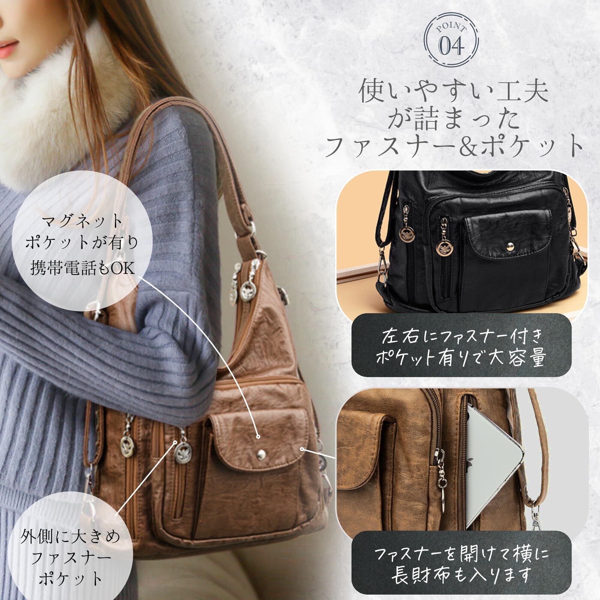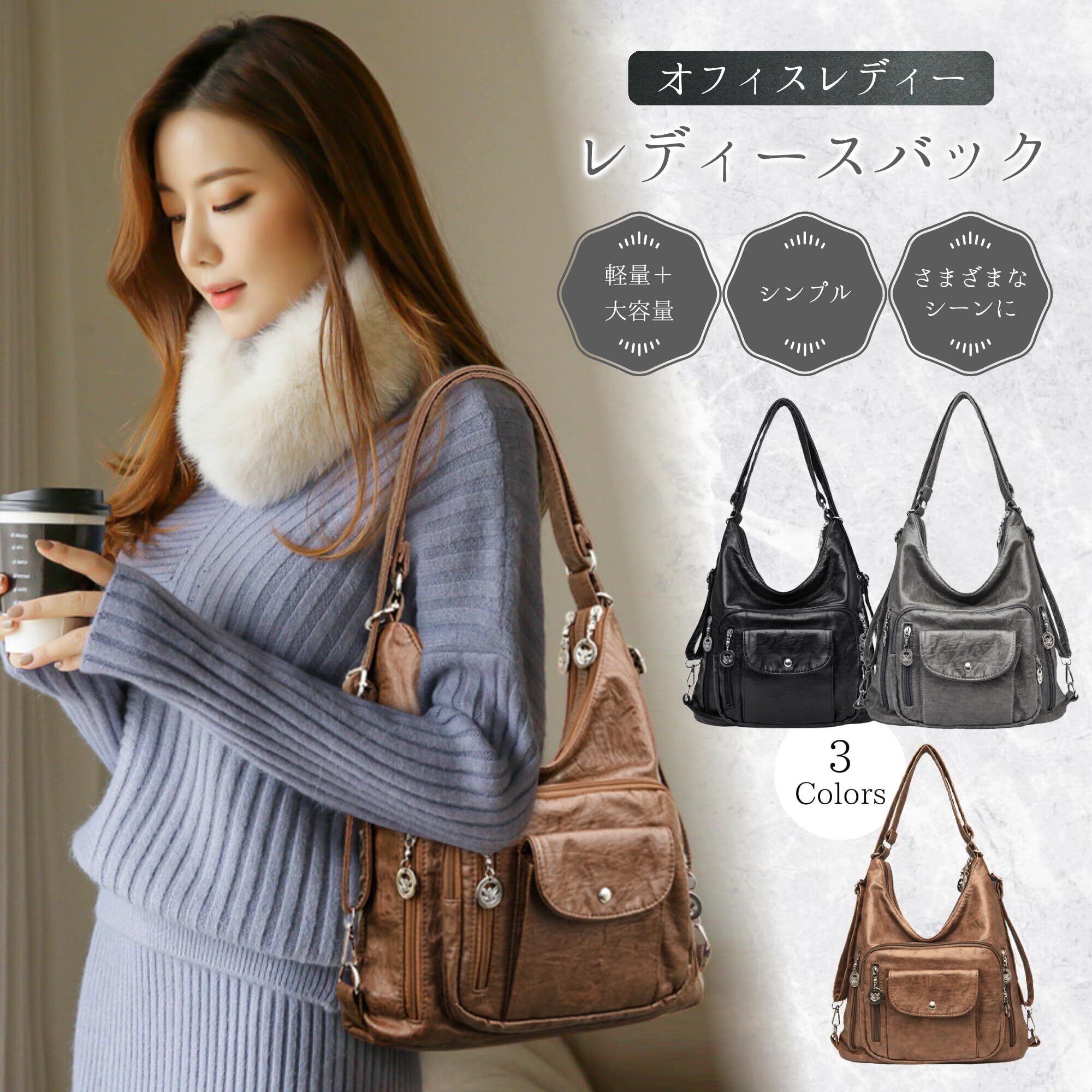 ・【レディースショルダーバッグ】 洗練されたお洒落なデザインが特徴の「レディースショルダーバッグ」。高級感のあるPUレザーを採用しており、様々なテイストのコーディネートにマッチします。カラーはブラック、グレー、ブラウンの3色展開からお好みに合わせてお選びいただくことが可能です。