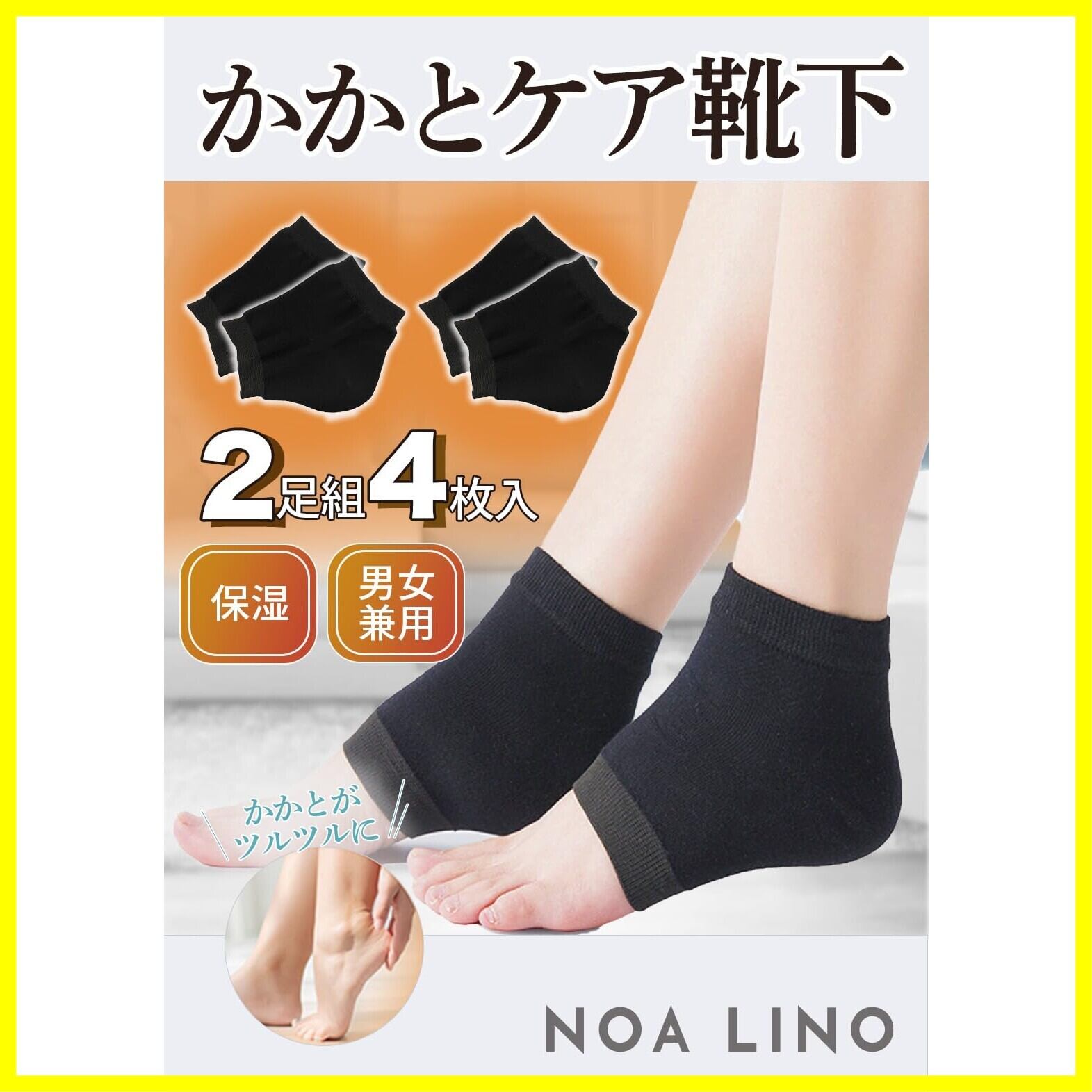 【まずはお試し!2足セット】 かかとケア 靴下 かかと保湿 2足組 ソックス 履くだけでかかとツルツル ひび割れ対策 男女兼用 フリーサイズ NOA LINO (ショートタイプ(ブラック×2))