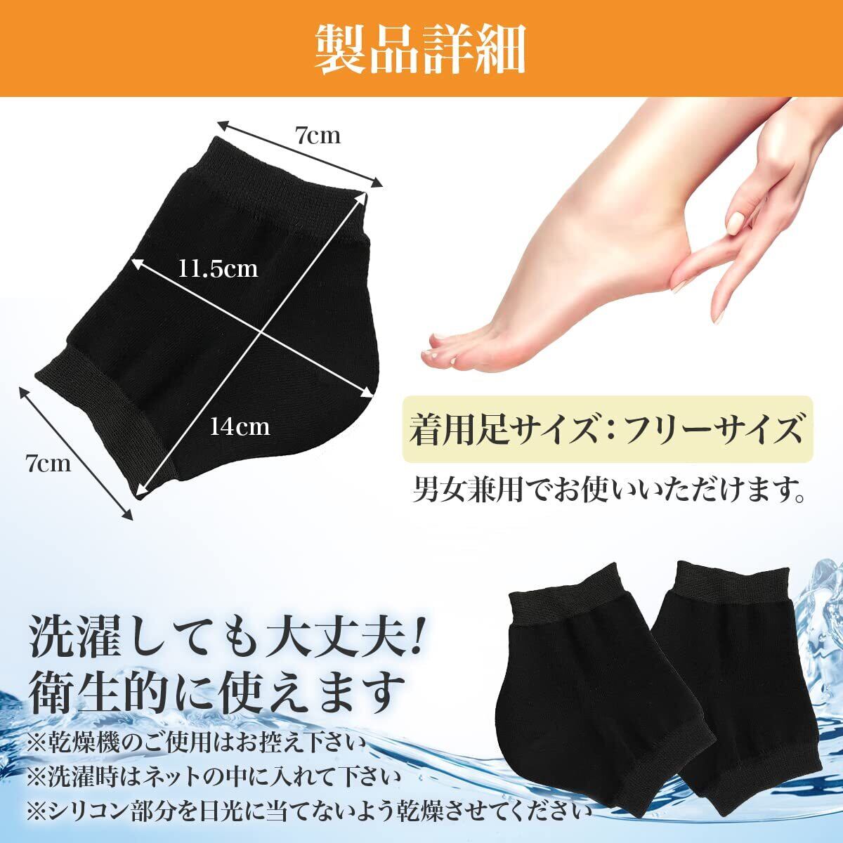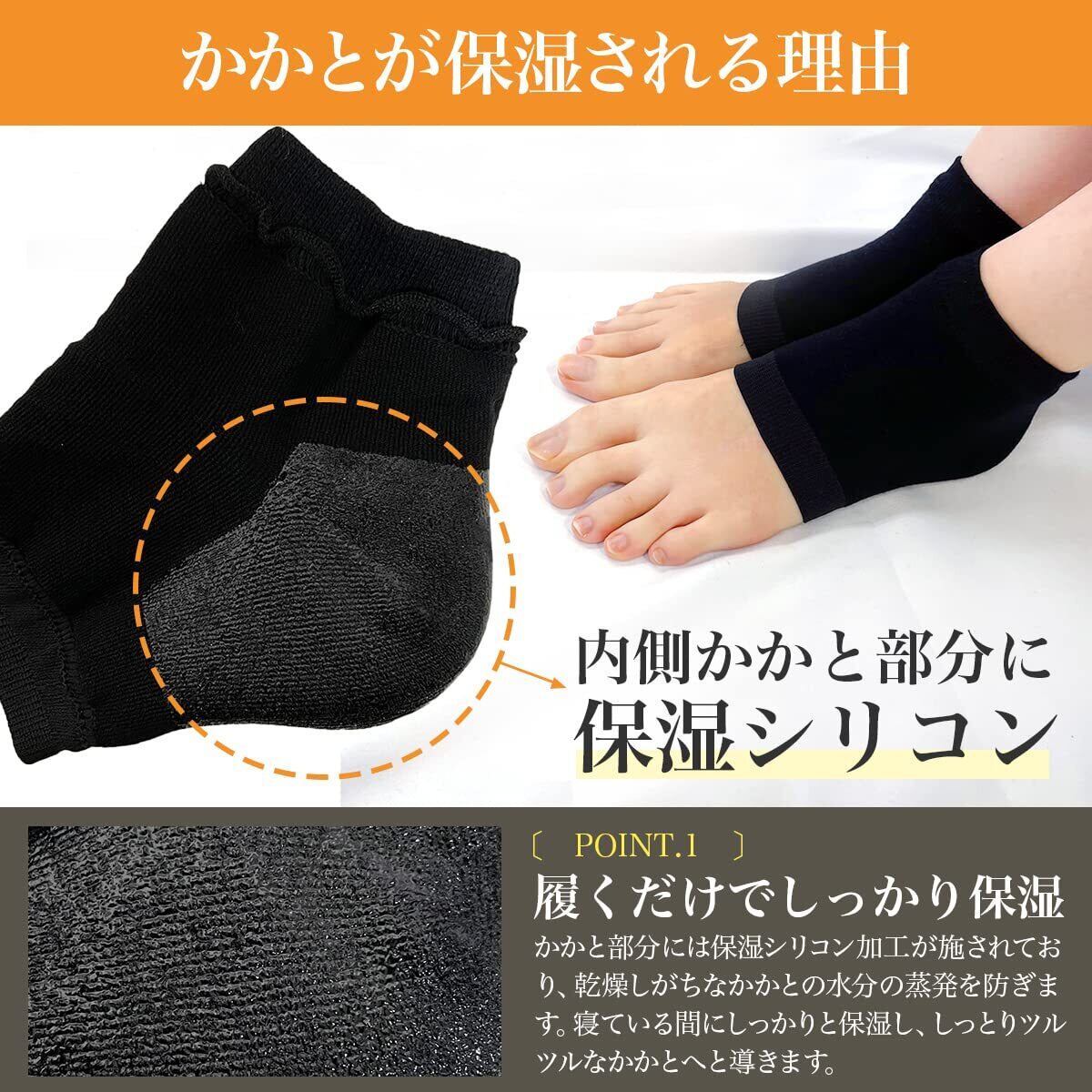 【履くだけでしっかり保湿】かかと部分には保湿シリコン加工が施されており、乾燥しがちなかかとの水分の蒸発を防ぎます。
